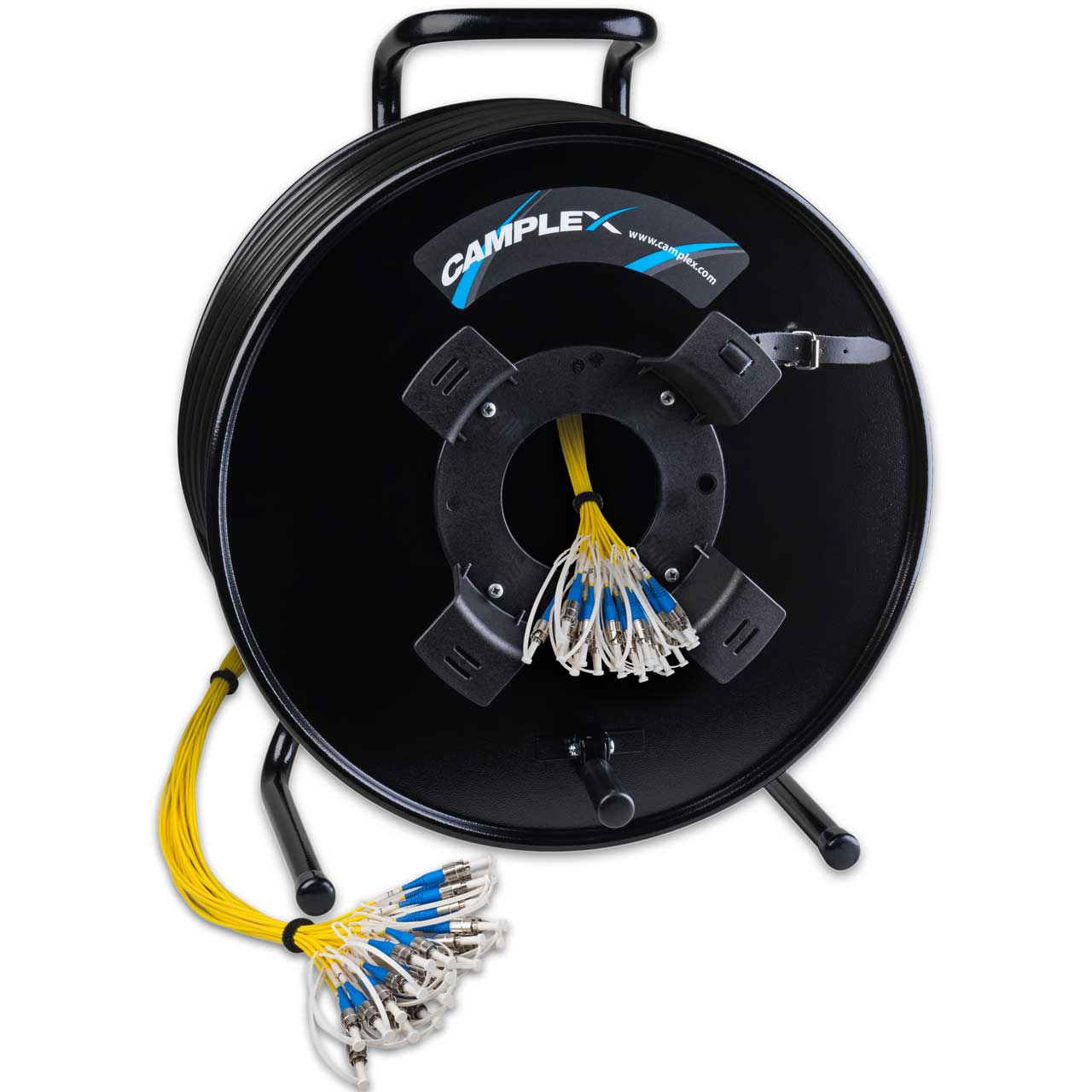 The Camplex HF-TR24 series ST Single mode 24-channel tactical fiber optic cables are designed for field production and outside broadcast deployments. Highly flexible tight-buffered tactical cables with internal aramid strength members for crush resistance in high traffic areas if handled properly and a polyurethane outer sheath designed to withstand crushing by both Military Tanks and Outside Broadcast vehicles.