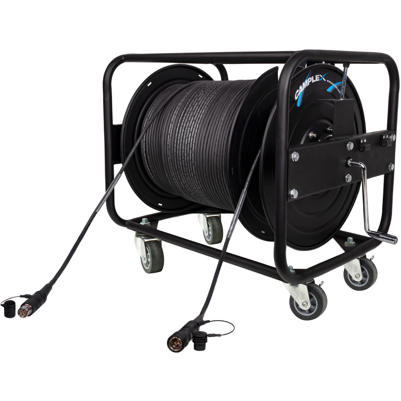Camplex's HF-TRCSMPT series of Canare HFO SMPTE hybrid fiber optic camera cables on reels, made in our Canare-certified shop, are designed for studio and broadcast applications. Featuring a tear-resistant polyurethane jacket, ensuring superb mechanical strength. These assemblies are suitable for use in the most demanding studio and broadcast applications requiring high-speed uncompressed HD video transmissions over long distances. All assemblies are multi-stage machine polished and tested for <.55db RL. Meets or exceeds SMPTE 304M/311M standards.