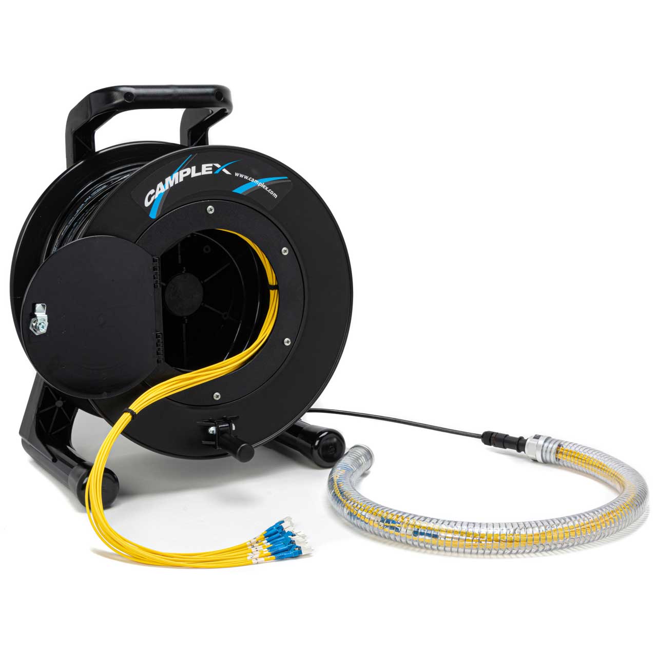 Our Tactical Fiber Snake Reels include JackReel, Schill or Hannay fiber optic cable reels with in-hub fanout & connector protection cavity. Each reel has been carefully selected to ensure proper support and critical bend radius required by fiber optic cables. We recommend tactical fiber optic cables over 25 feet be stored on a cable reel.