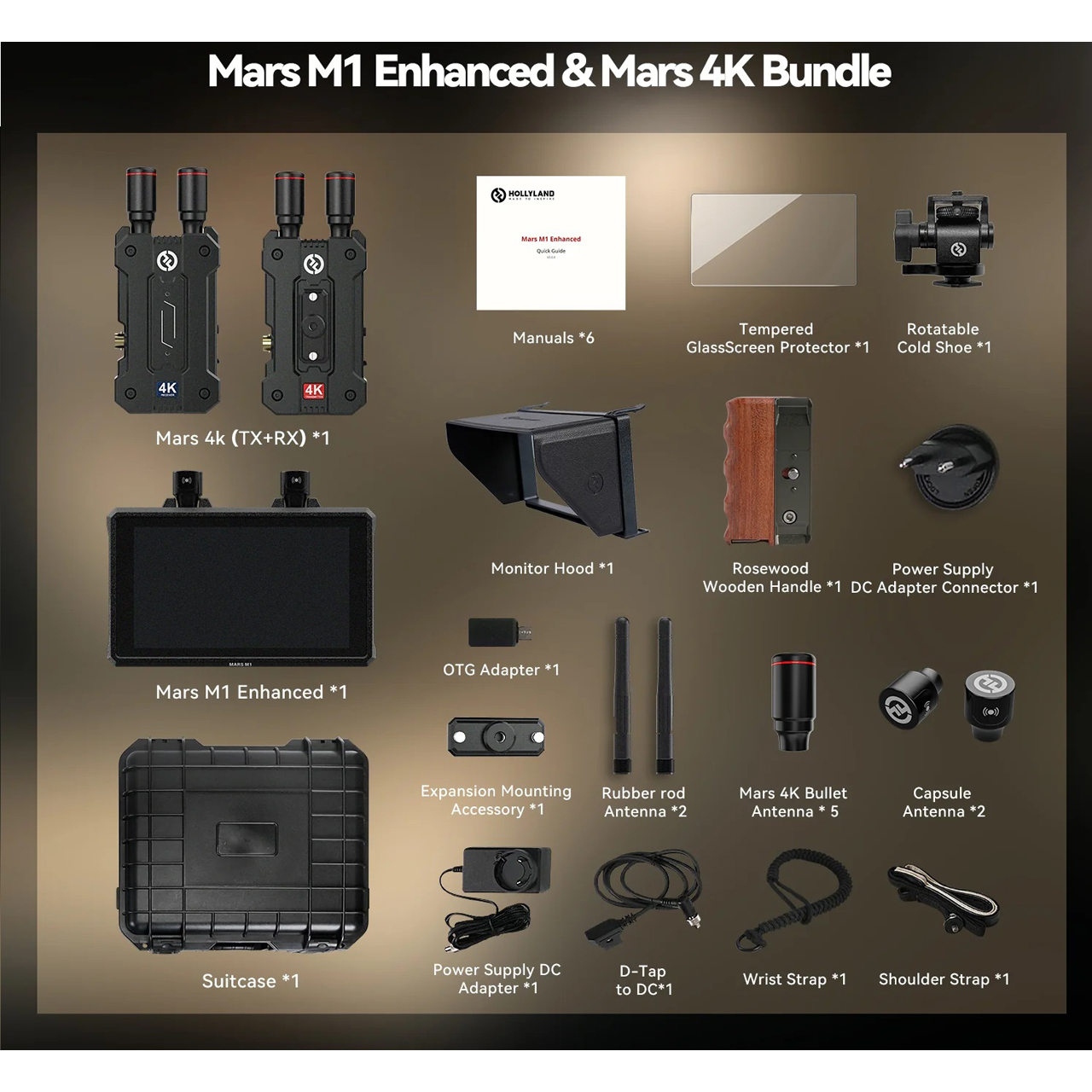 Introducing the Hollyland Mars M1 Enhanced Monitor & Mars 4K Kit Bundle - featuring the Mars M1 Enhanced, the Mars 4K Receiver, and the Mars 4K Transmitter, perfect for wirelessly sending and receiving 4K HDMI signals, all for one lower price!