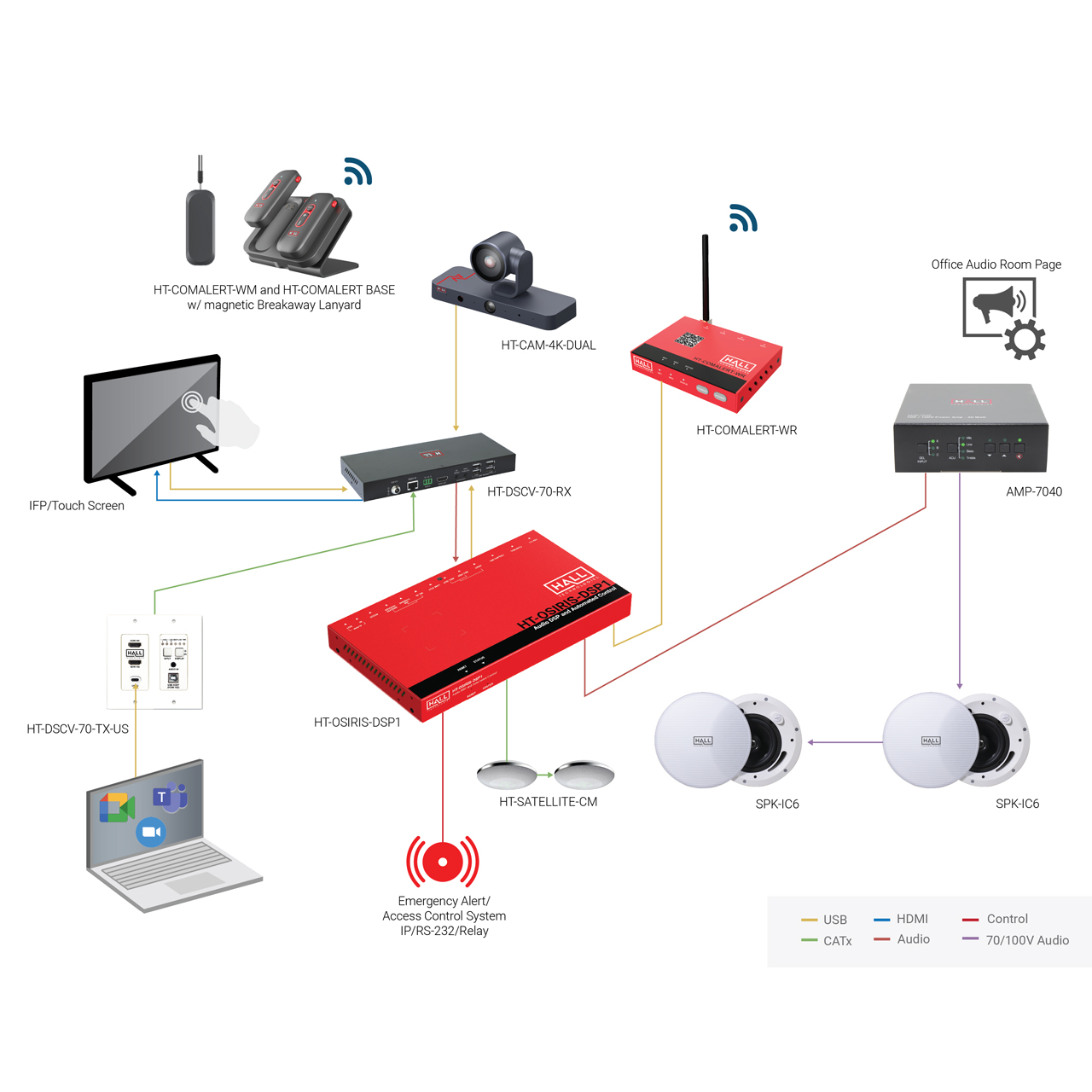 The Hall Technologies HT-CAM-4K-DUAL is a 4K dual lens tracking camera designed for medium-sized meeting rooms, providing a perfect display of the room along with zoomed in details. With built-in AI intelligence, the camera can automatically pan, tilt, and/or zoom to the best view to include all participants or track a presenter while displaying a wide fixed view of the room with picture-in-picture.