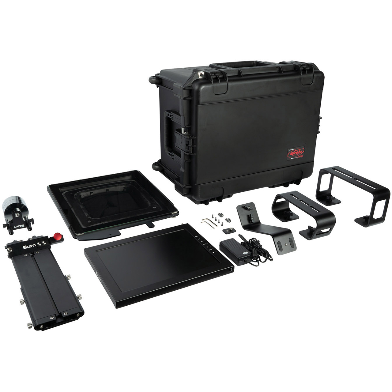 Ikan's professional line of teleprompters not only include three different camera mount bases but also counterweights to allow for a large range of different-sized cameras to work. The counterweights can be split so that the teleprompter can support a 5 lbs counterweight or a 2.5 lbs counterweight. The base can conveniently slide to adjust the weight without the need to remove the plate.
