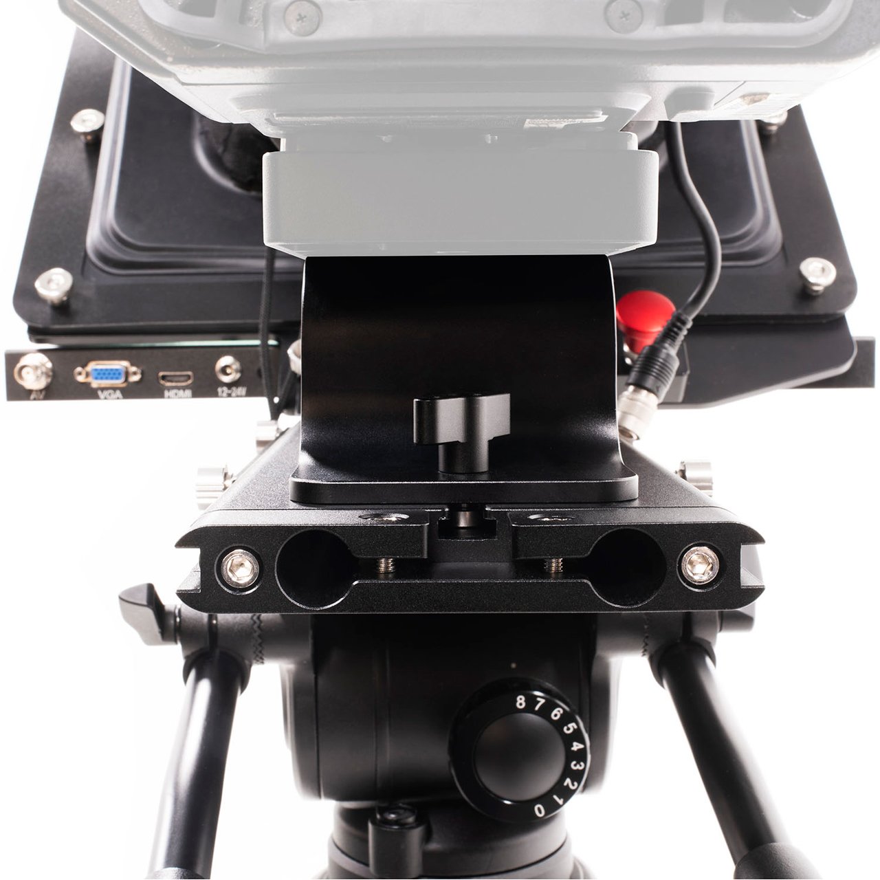 Ikans professional line teleprompters not only include four different camera mount bases but also counterweights to allow for a large range of different-sized cameras to work. The base can conveniently slide to adjust the weight without the need to remove the plate.