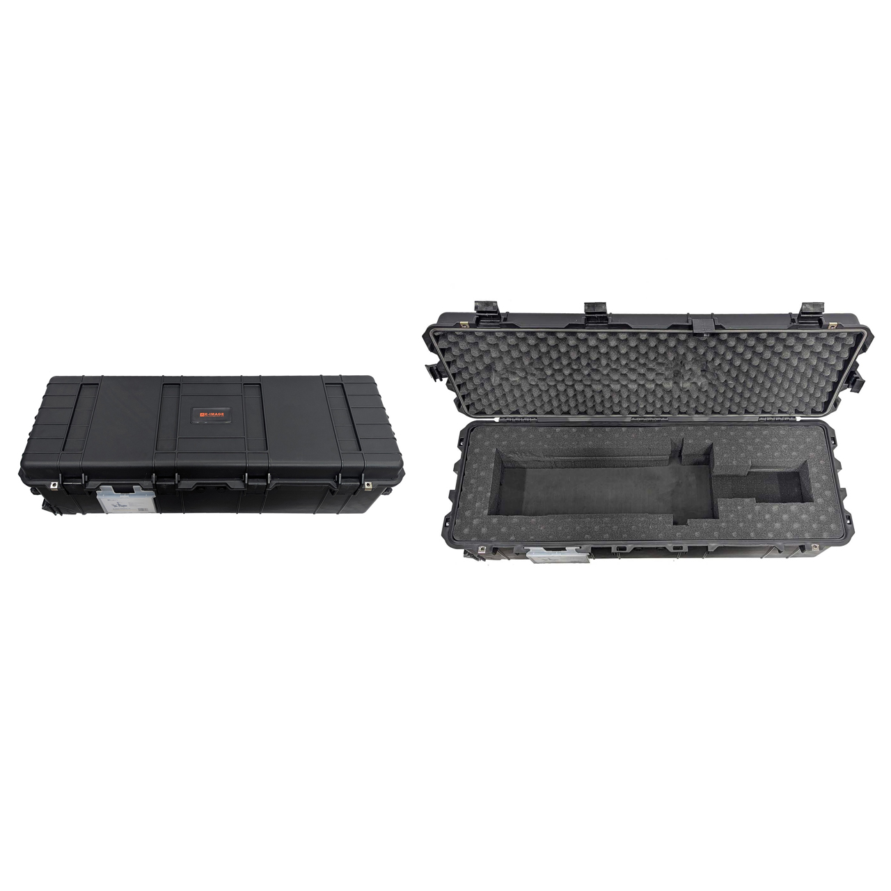 This motorized pedestal comes included with a padded foam hard case with wheels, making it ideal for travelling between different filming locations. The case has six locks and a folding handle.