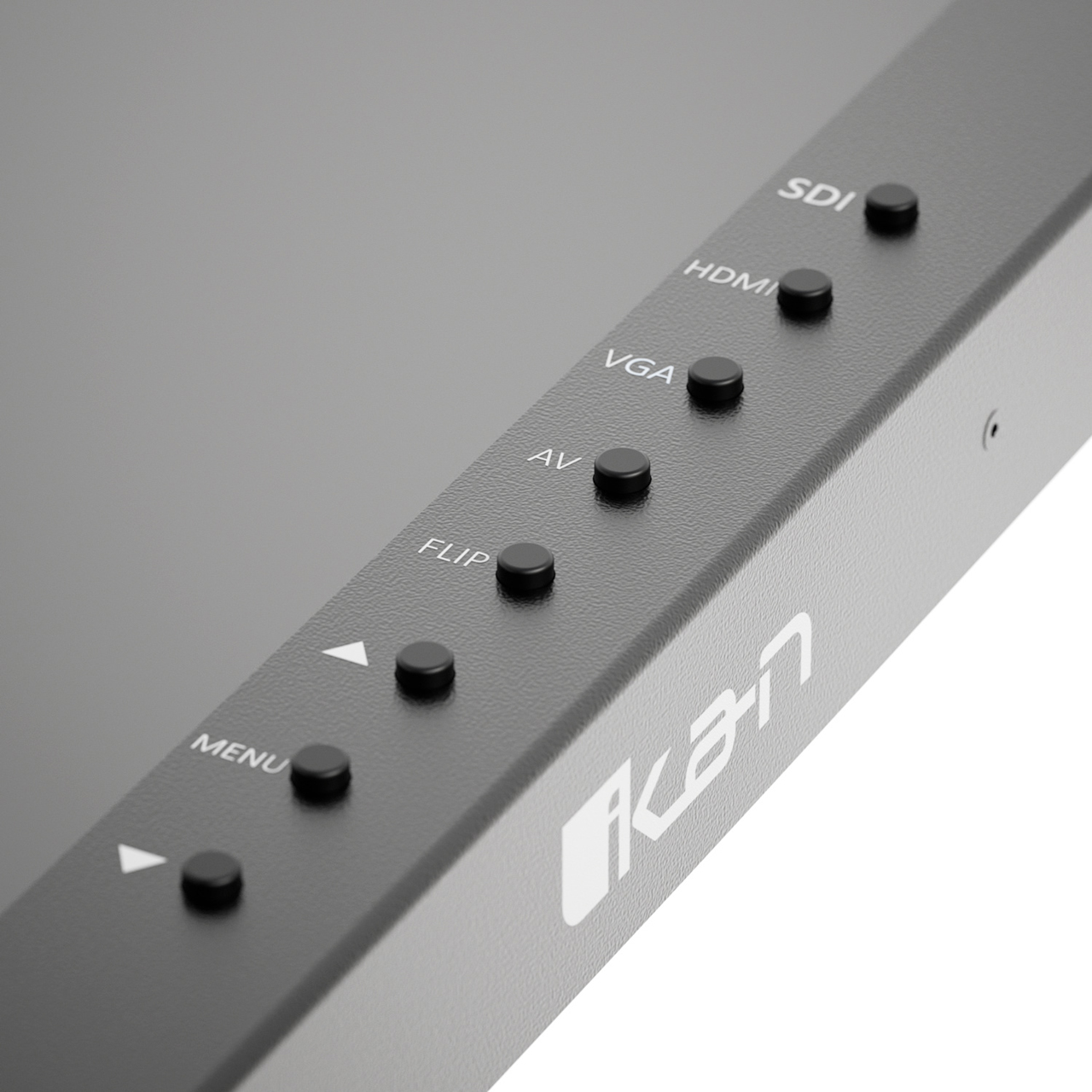The 19" prompter monitor features SDI, HDMI, Composite, and VGA inputs. The native resolution is 1280 x 1024, and the max brightness is 1000 nits. The OSD adjustment menu allows adjustment for contrast, brightness, backlight, tint, chroma, and sharpness. You can also adjust the intensity of each RGB color channel. Aspect ratio can be set as 16:9, 4:3, full, or it can be set to automatically detect the aspect ratio and set it accordingly.
