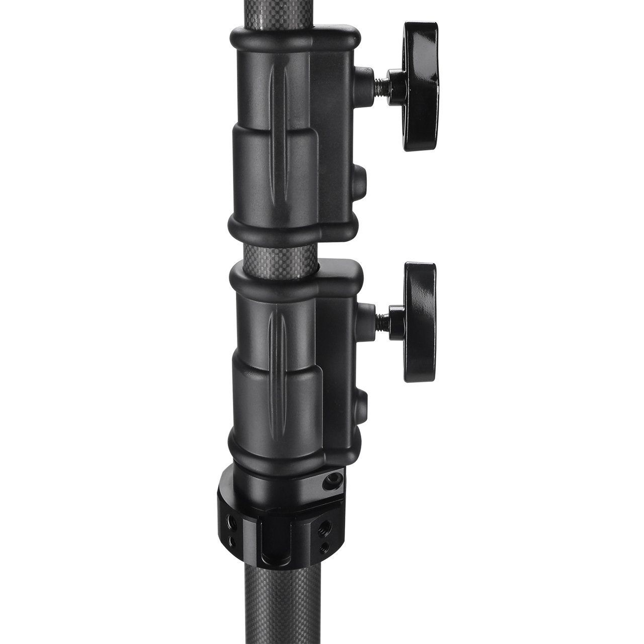 Standard 1/4" and 3/8" screw threads enable users to make use of a variety of accessories such as articulating arms, monitors, etc. This versatility facilitates the easy attachment of these and other photographic equipment, enhancing the stand's utility across different setups. The inclusion of multiple screw sizes ensures flexible and convenient integration of essential accessories for diverse shooting environments.