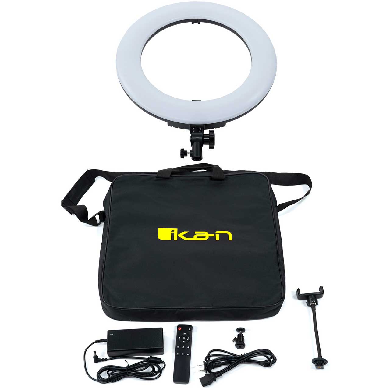 The ikan 18" RLB48-M2 multi-mount ring light kit has just the right amount of illumination to give any subject that sparkle in their eyes. The large diameter opening allows for any size camera to be used with the light. The soft diffused LED's give the ring light a bright but wrapping light that makes your subjects glow. The control knobs on the back of the allow you to quickly switch from brightness to color with a simple push of the button.