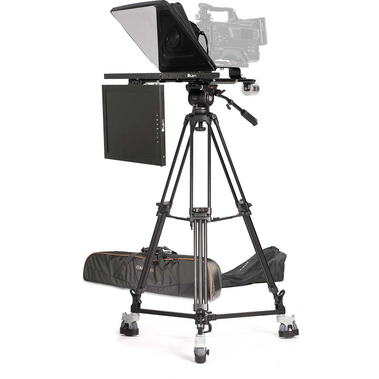 Ikan’s Turnkey Broadcast Solutions include everything you need for your professional camera & teleprompting setup. This PT4500S-TM-TRIPOD solution includes a 15" 3G-SDI teleprompter w/ talent monitor, tripod, and dolly. All of their systems have been tested internally for payload compatibility.