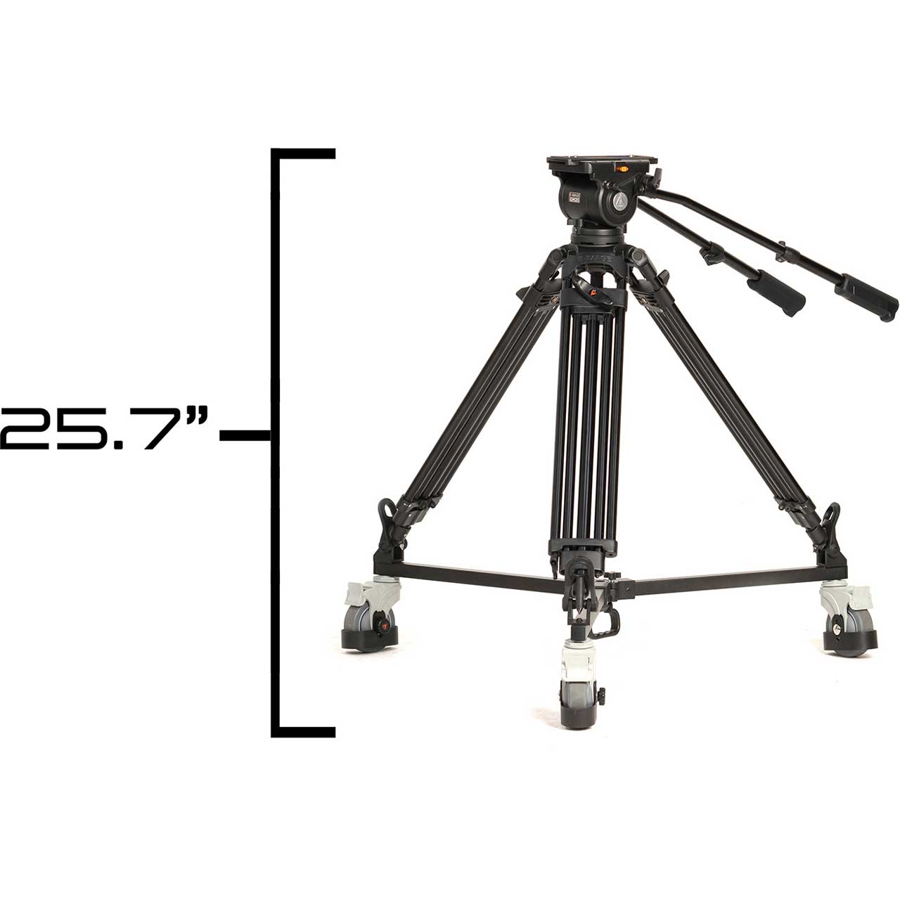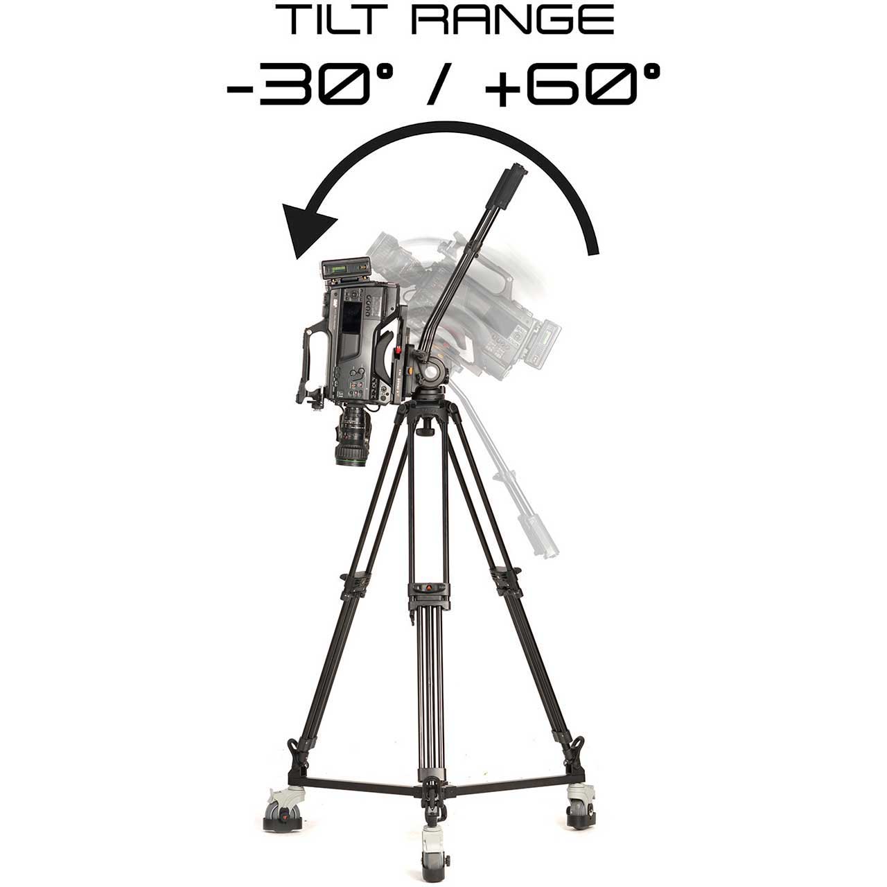 The remaining payload capacity, after mounting the full 15" teleprompter system without the counterweight, can accommodate camera setups up to 21.2 lbs. The tripod, without the teleprompter system, can accommodate cameras up to 44.1 lbs. This solution also includes a carrying bag for the dolly.