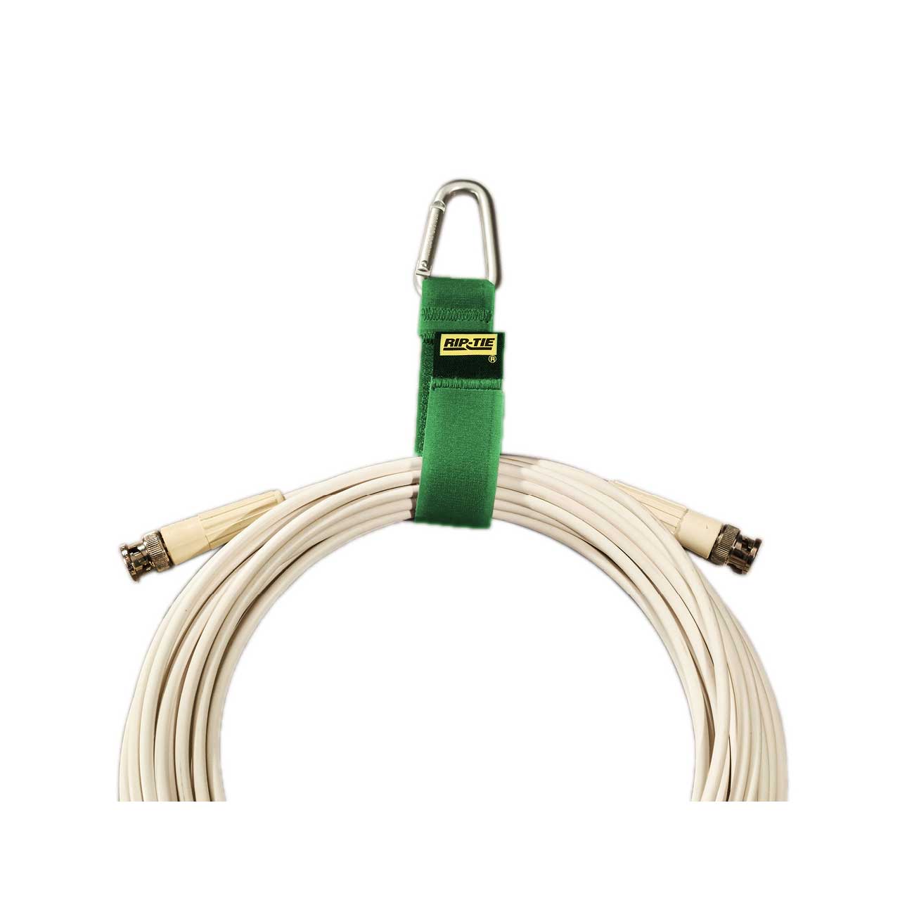 The Rip-Tie CableCarrier attaches to a belt loop or tool belt for easy access to extra cables: power cords, speaker, microphone or lighting cables. It can also be used as a temporary hanger for cable runs during events, construction or installations. Note: Carabiners are non-load bearing and are not to be used in personal safety applications.
