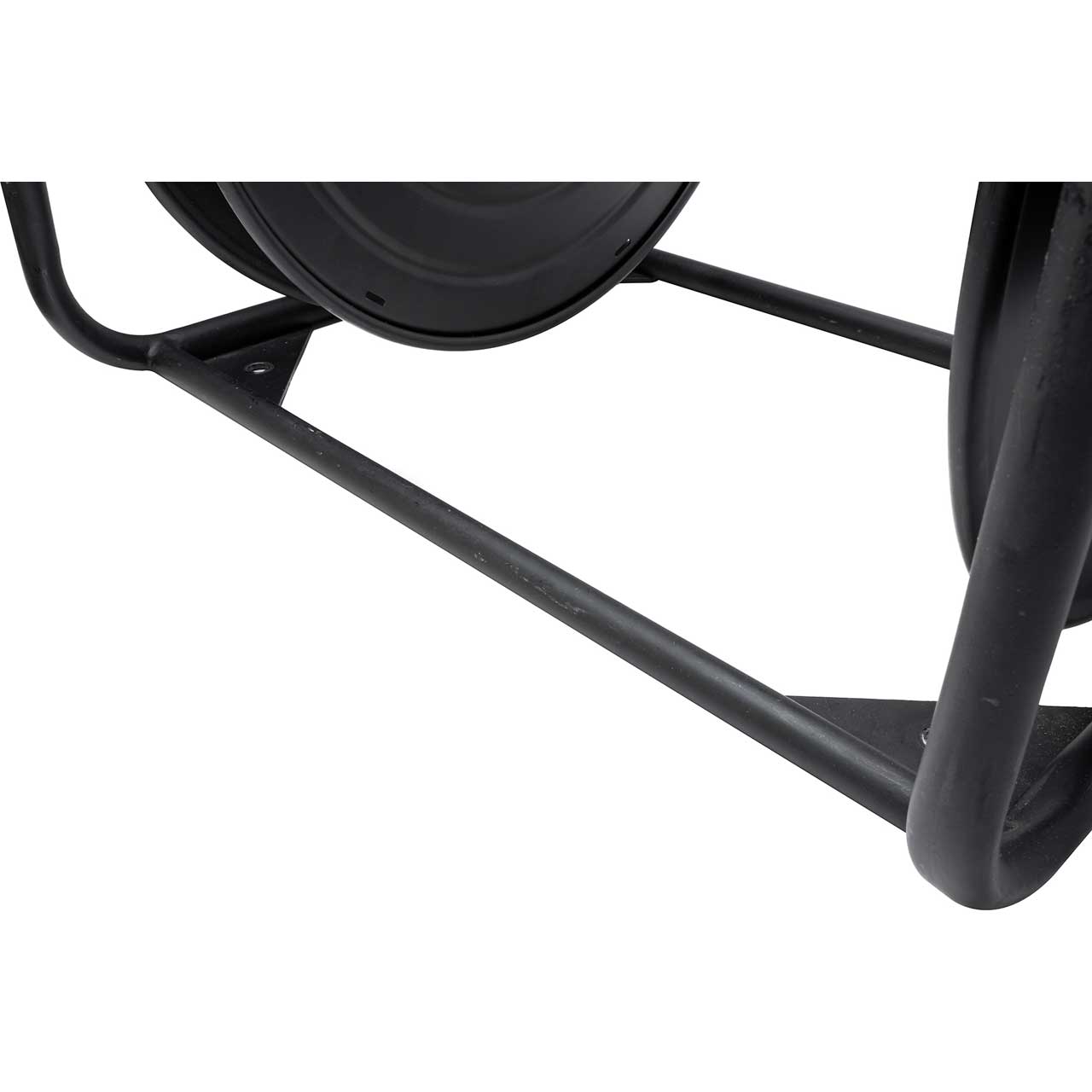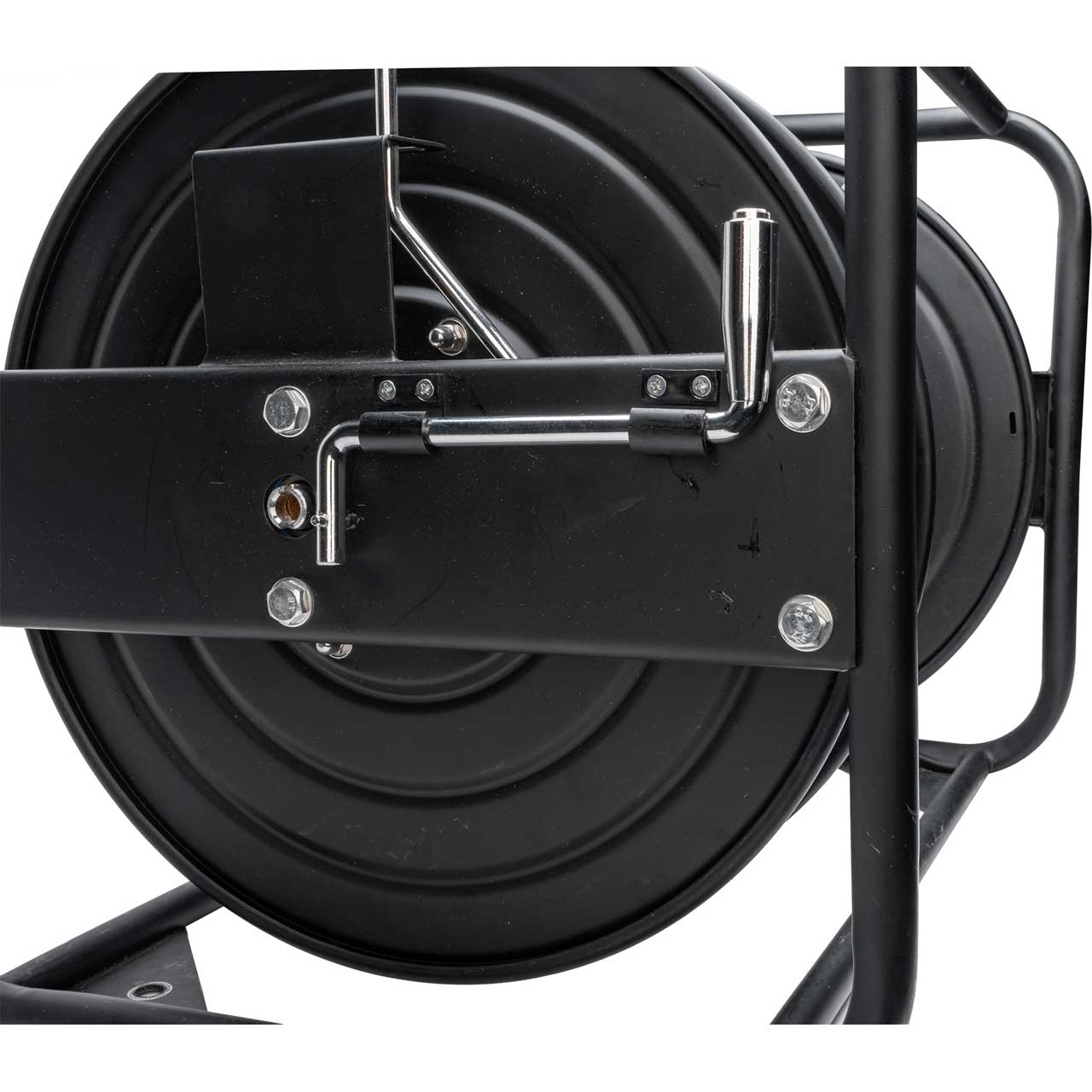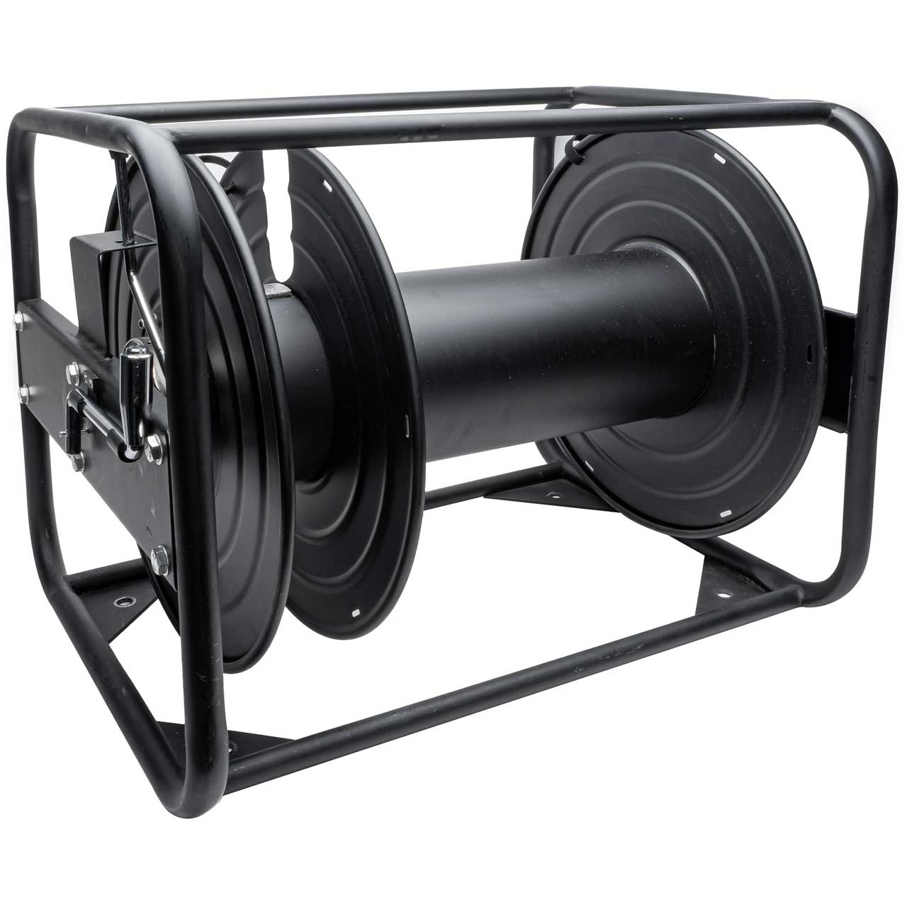 The JackReel XL1 features rugged steel construction with round tubing protective frame, non-reflective black matte finish, adjustable cam-lock drag brake for fast cable rollout and storage and large heavy duty locking caster wheels.