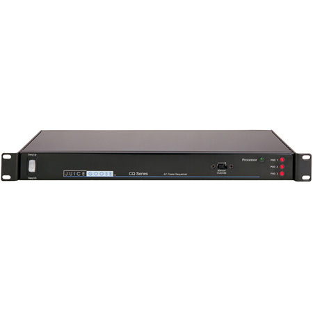 The CQ-1520 is a single space rack mount device featuring 7 AC power outputs on the rear of the chassis with a combined rating of 20 amps . One output is unswitched. The remaining 6 outputs are grouped into 3 Power Pods of two outputs each. Each Power Pod is an individual sequence event. All outputs have Juice Goose quality surge and spike protection and line noise filtration.