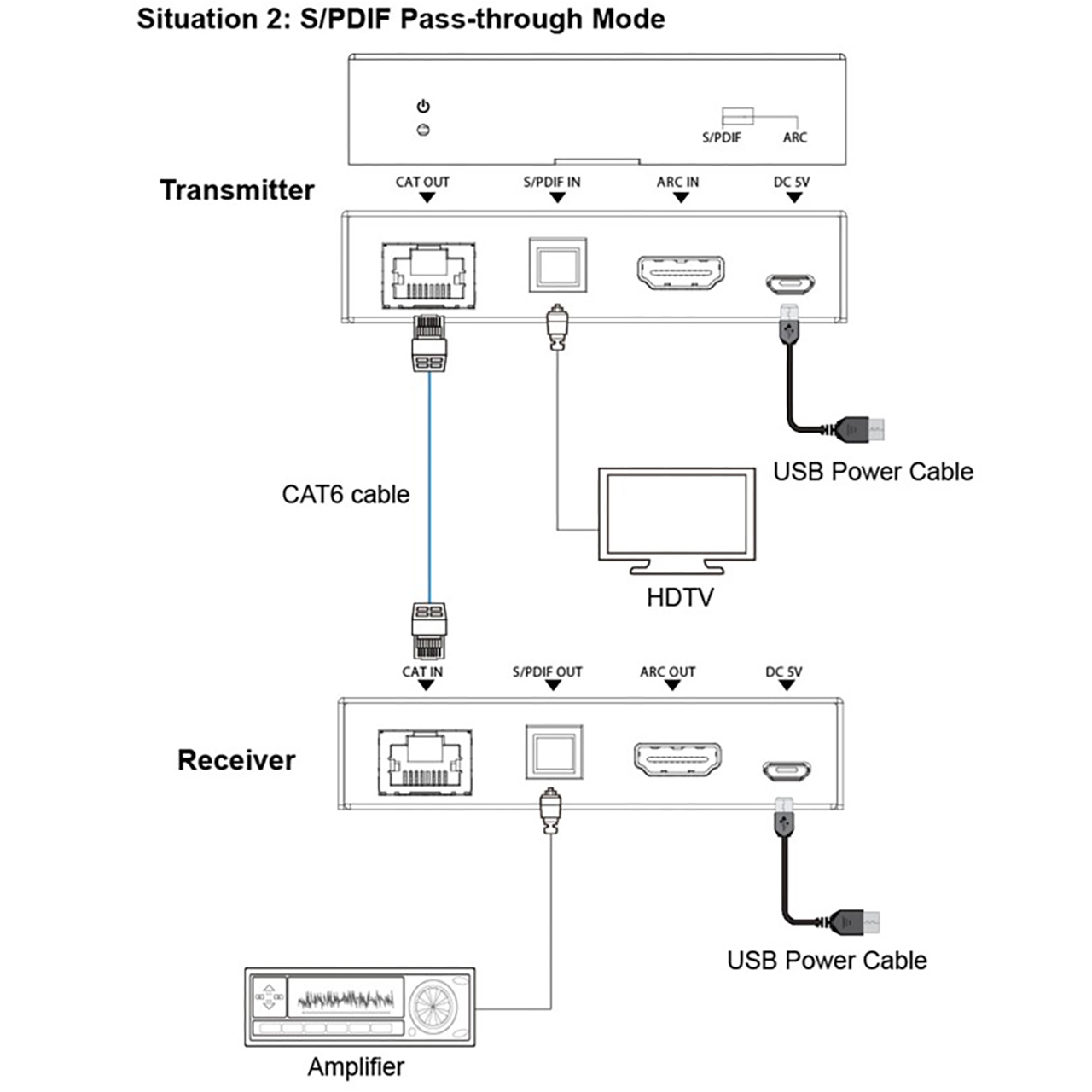 When an ARC-enabled display is installed far from the amplifier or AV rack - across a ceiling, through conduit, or down a floor - the native HDMI cable offers no practical path for audio return. The KanexPro AUD-EXT-ARC150M closes that gap, extending HDMI ARC or optical S/PDIF audio up to 492ft (150m) over a single CAT5e/6/7 cable in a compact TX/RX kit. One cable replaces what would otherwise require signal repeaters, analog conversion, or dedicated audio cabling runs.