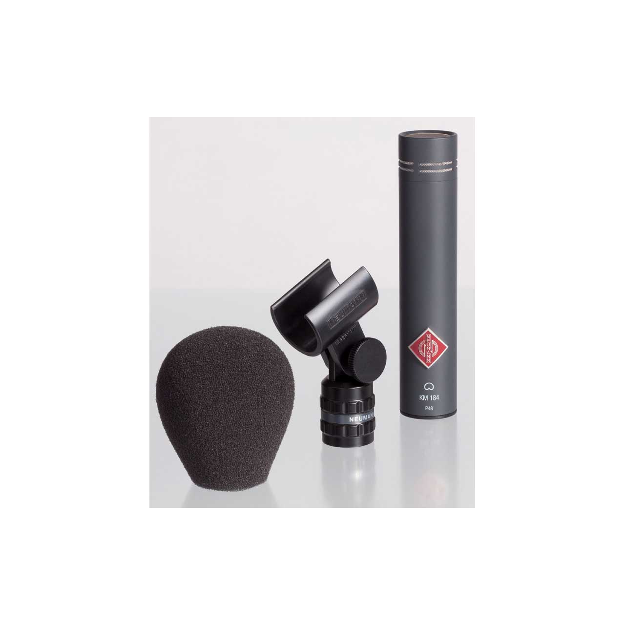 The KM 184 is a universal microphone for studio and stage applications. Its transparent sound makes the KM 184 a superb microphone for acoustic instruments, such as piano, percussion, drums, acoustic guitar, upright bass, violin, cello, woodwinds, and brass. The KM 184 can be used for soloists as well as ensembles. Thanks to its superior off-axis behavior, the KM 184 is an excellent microphone for stereo and surround recording with perfect imaging. Although the KM 184 is not specially optimized for the human voice, it is often used for classical vocals and whenever sonic authenticity is paramount. Due to its small size, the KM 184 is visually unobtrusive and well suited to TV and radio applications.