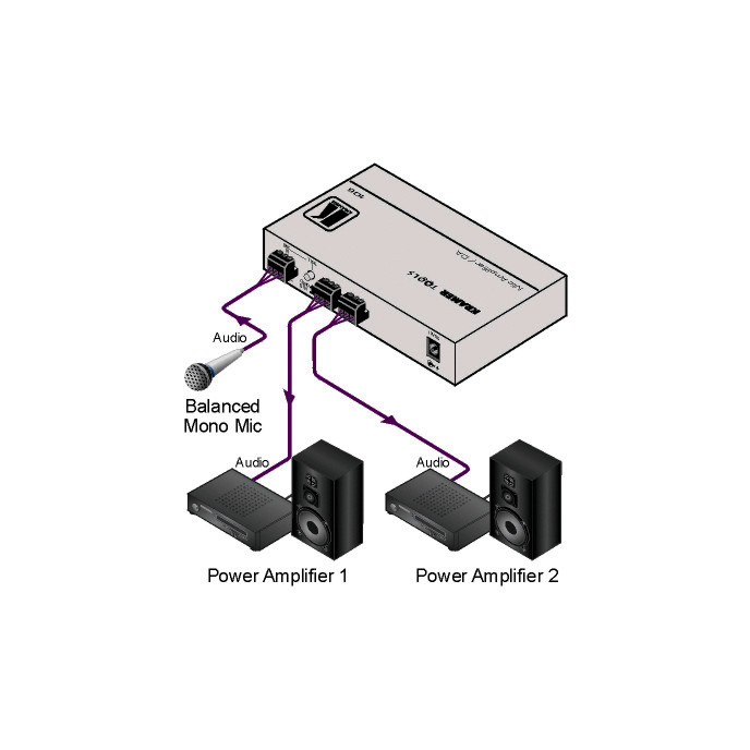 The Kramer 106 is a high-quality distribution amplifier for balanced mono microphone signals. It takes one dynamic or condenser microphone input and distributes the signal to two line-level outputs.