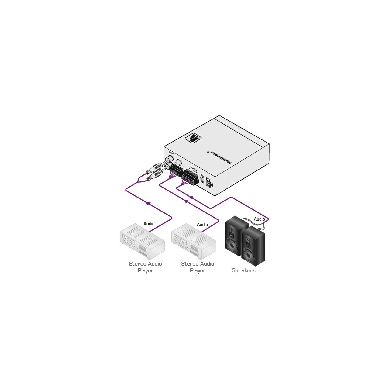 • Inputs: 1 balanced stereo audio on a terminal block connector, 1 unbalanced stereo audio on RCA connectors