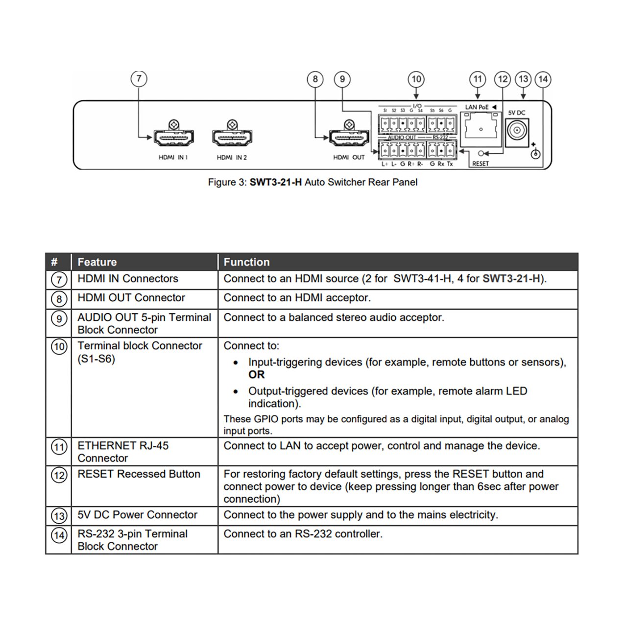 Kramer SWT3-21-H is an intelligent 2x1 automatic switcher for 4K60 4:4:4 HDMI video signals, with plug and play user experience such as priority or last-connected auto-switching based on active video signal detection, and easy remote IP-driven management and control.