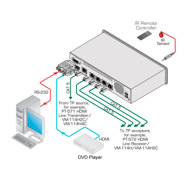 • Use with Kramer KR-PT-572-PLUS HDMI CAT5 receiver