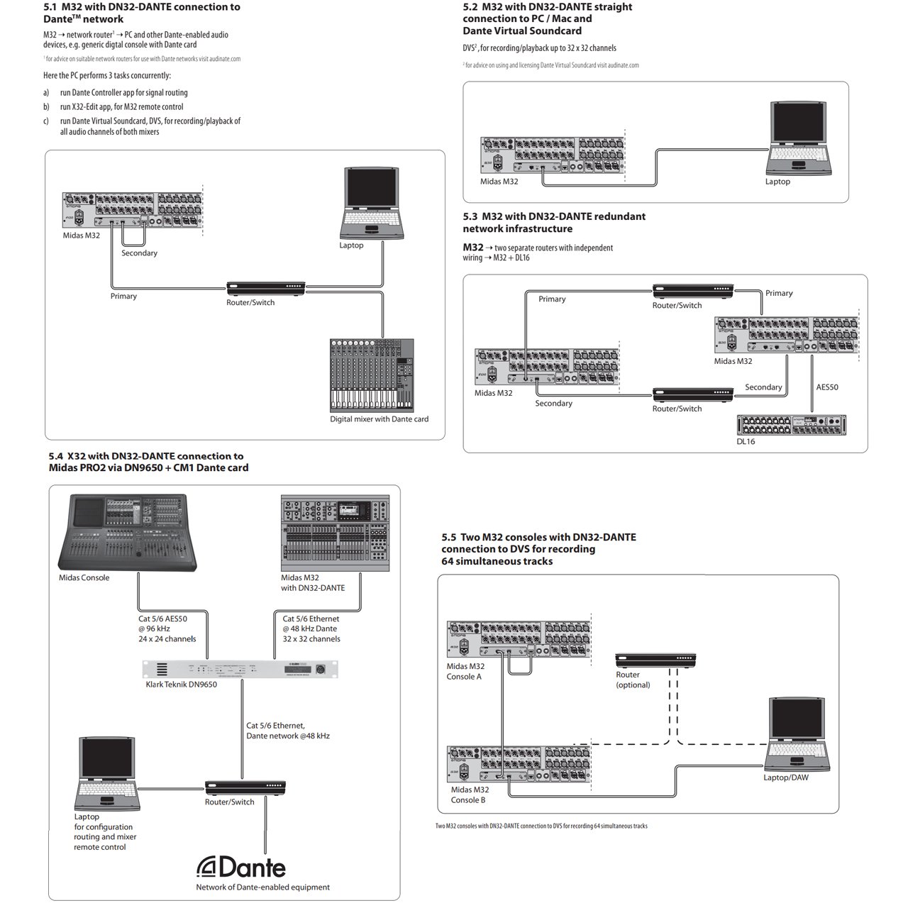 The Klark Teknik DN32-DANTE expansion card provides up to 32 channels of bidirectional, networked audio to your Midas M32 or Behringer X32 mixing console for seamless integration with Dante enabled IP networks. Based on information technology standards, Dante provides uncompressed, multichannel digital media networking, with low latency and synchronisation. By focusing on flexible interoperability on an existing IP network infrastructure, Dante has been widely accepted and adopted by many pro audio manufacturers.