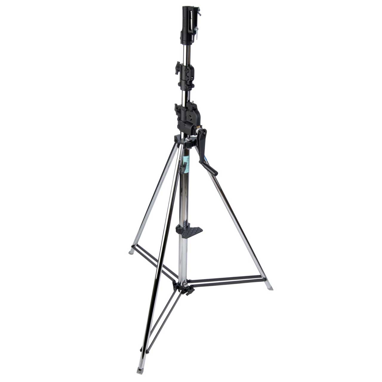 The 3 Section Wind-Up Stand with Auto Self-Locking Device delivers safety and strength with precise height adjustments of 1.73" (4.4cm) per turn of the handle.