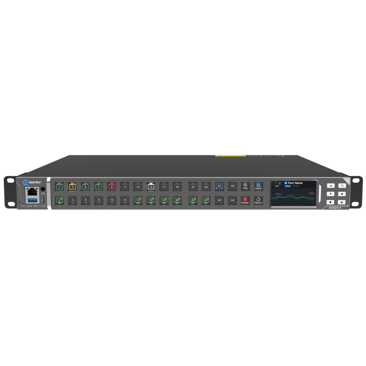 AVX24-4 Media HUB, Kiloview's next-generation IP and media management platform, is designed to simplify, visualize and elevate AV-over-IP workflows. As a central media hub, it integrates visualized network topology, intelligent diagnostics, NDI-optimized routing, and centralized device management into one compact system.