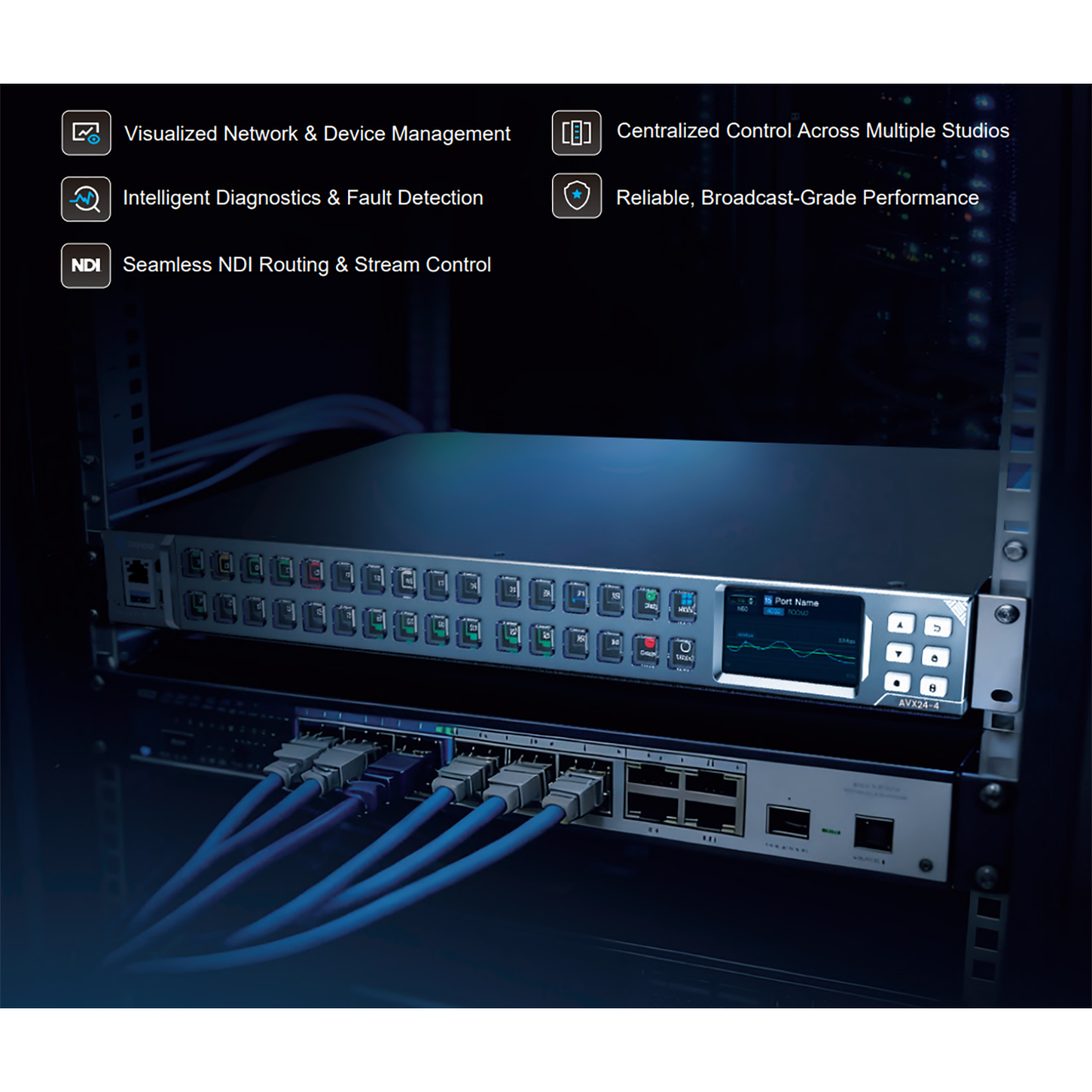 By turning complex IP AV infrastructures into simple, efficient, and visualized workflows, AVX24-4 Media HUB bridges IT complexity and AV operation, enabling studios, production centers, and enterprise environments to efficiently manage professional IP media networks.