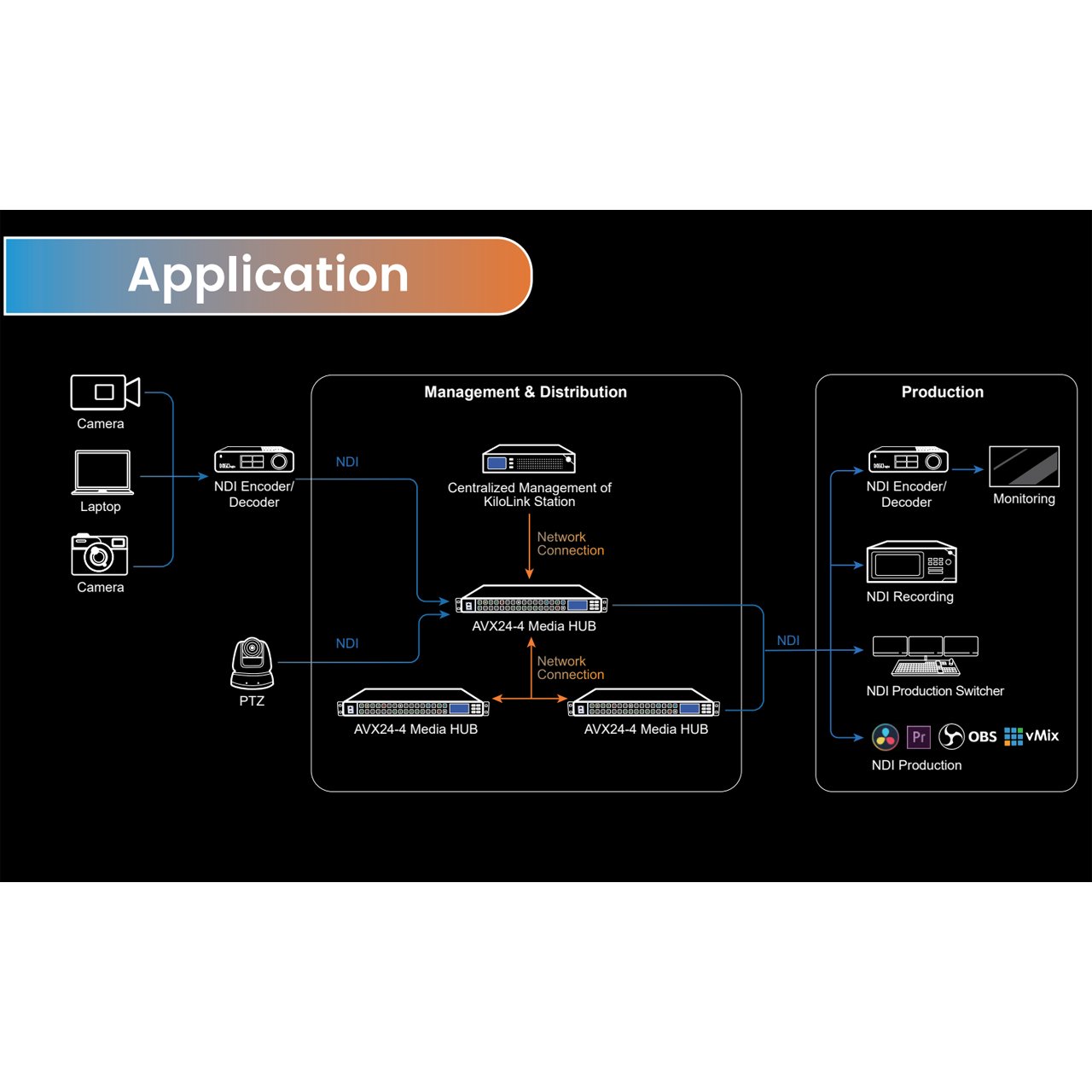 AVX24-4 Media HUB gives you confidence in your AV network. It provides fast and flexible network visibility and intelligence to ensure your AV network stays fully connected and performing without interruption.