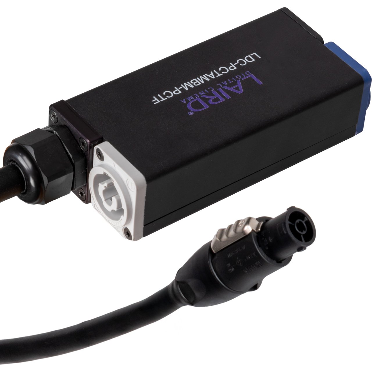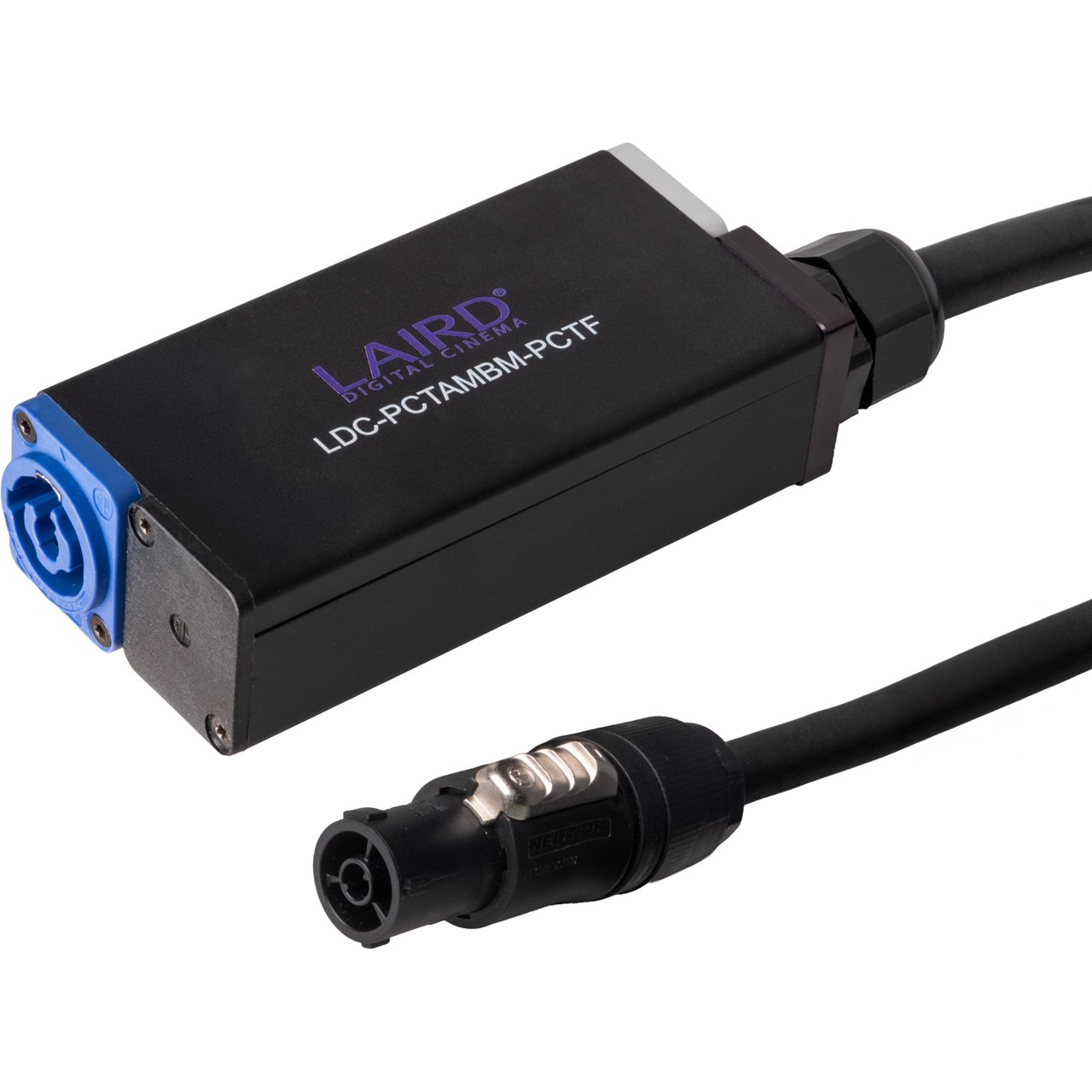The Laird LDC-PCTAMBM-PCTF is a powerCON power distribution splitter that sends power via Neutrik powerCON Type A to one Neutrik powerCON TRUE1 and one powerCON Type B connector.