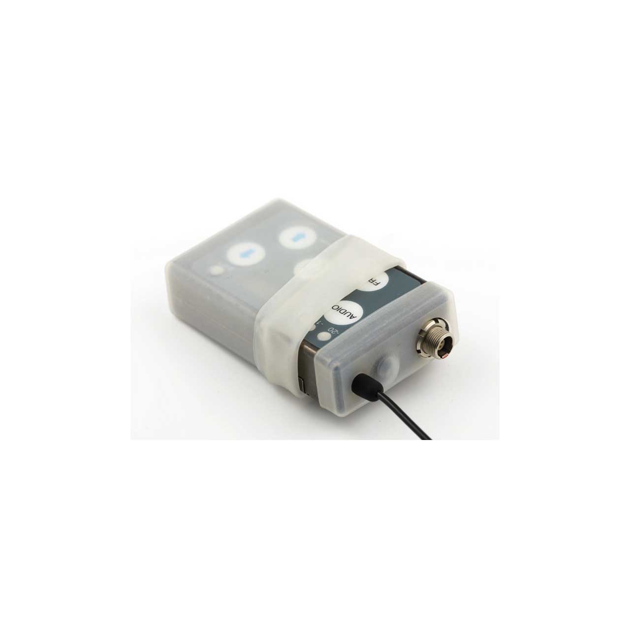 The SSMCVR tough silicone cover protects the SSM transmitter from moisture and dust. The pliable material and the two-part design make it easy to install and remove. Cutouts for the antenna and input jack and the raised dome for the LED provide a snug fit.