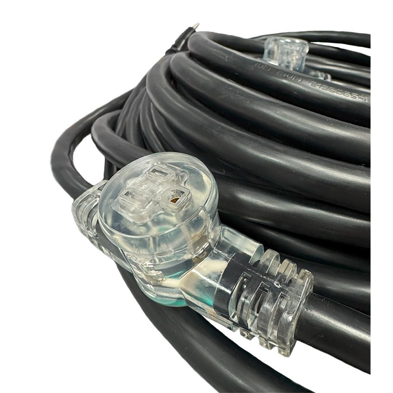 The LEX EST6R23FT is an Molded E-String Series, #12/3 Type SJT, AC Extension Cord that features a single NEMA 5-15 Male Plug broken out to 6 spaced and illuminated NEMA 5-15 Female Receptacles, 23 feet 4 inches long. Individual outlets feature a green LED making them visible in the low light conditions often found in live production, theaters, presentation rooms, or under desks.