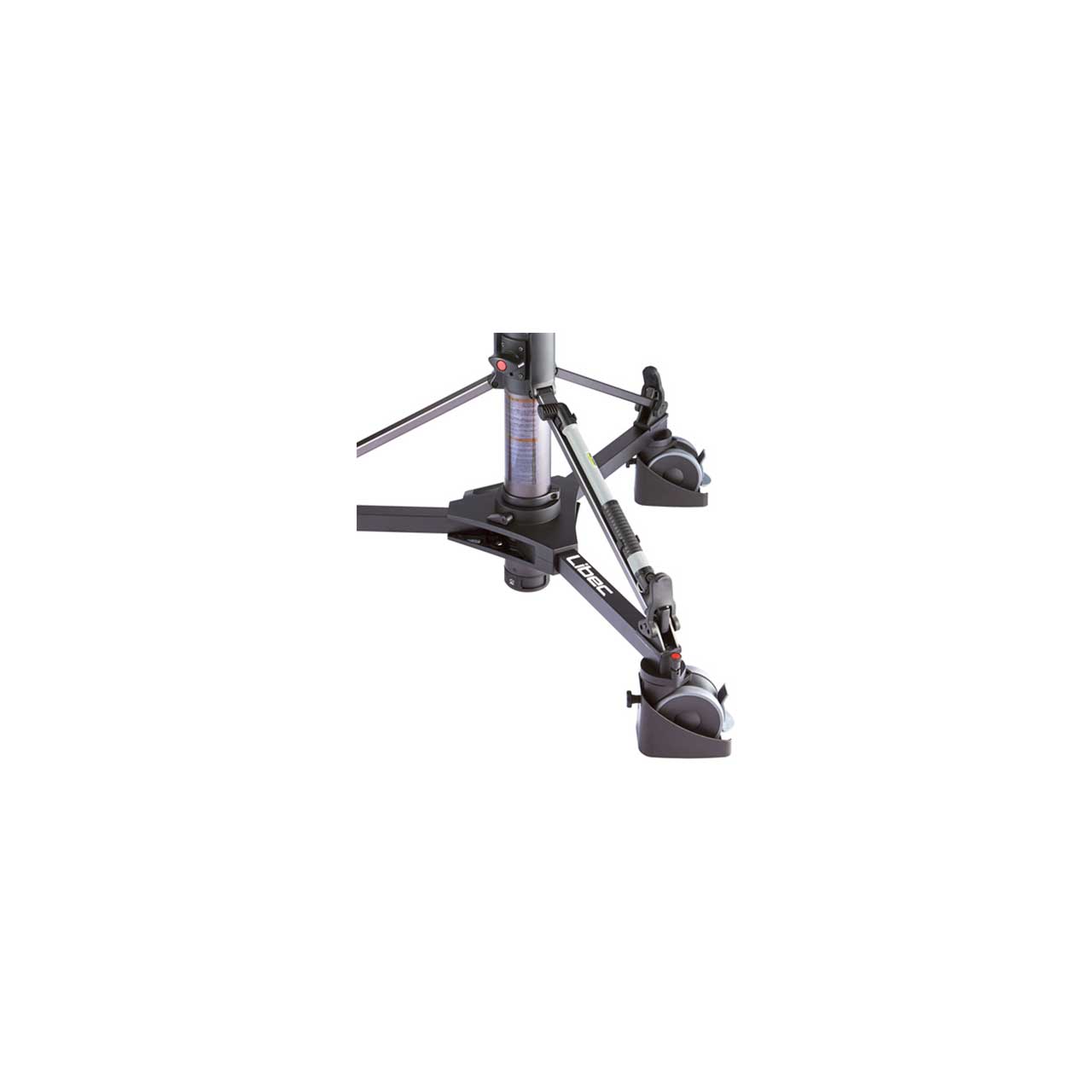 The P110S utilizes a double bearing system on the bottom in order to prevent the wobbling generated by quick vertical motion, and to provide smooth movement. Set up is very easy: unfold the dolly legs, set the pedestal column into the dolly, and use the air pump to adjust the air pressure to correspond to the weight of your camera. You can also adjust the air pressure with your camera attached. The air is tightly sealed, maintaining pressure for extended periods of time, and the lock knobs securely stabilize the unit for extensive shooting. Maximum load weight is 66lb. It also can be used with the H100 head for faster system shooting. This high performance LIBEC pedestal system is the perfect solution for your indoor/outdoor shooting needs.