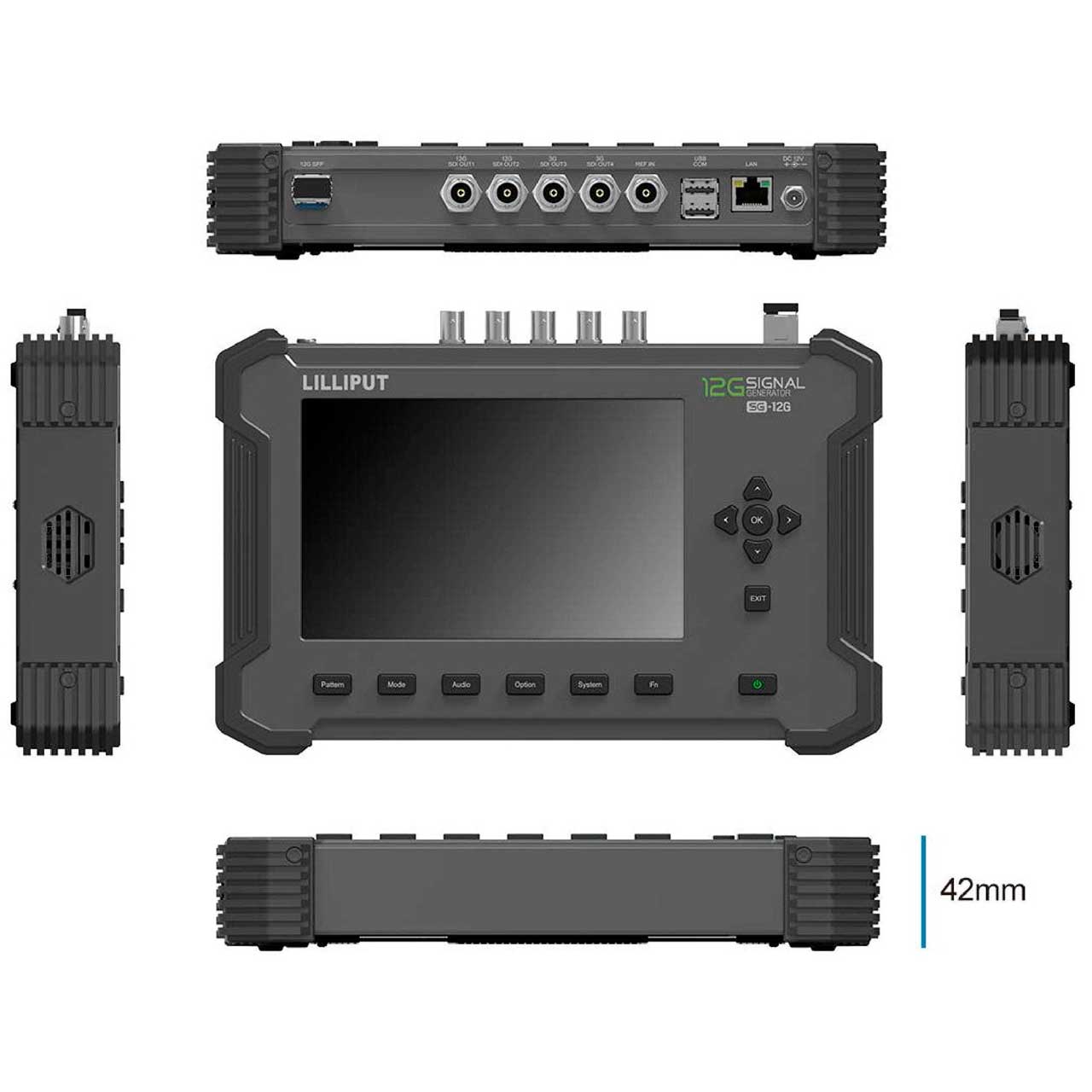 The Lilliput SG-12G is a multi-format advanced SDI pattern generator with Metal housing , Silicon Rubber and built-in battery. It support 12G-SDI and 12G-SFP output.Also have pattren measurement, signal compatibility, audio monitoring, overlay, timecode, ref in functions.
