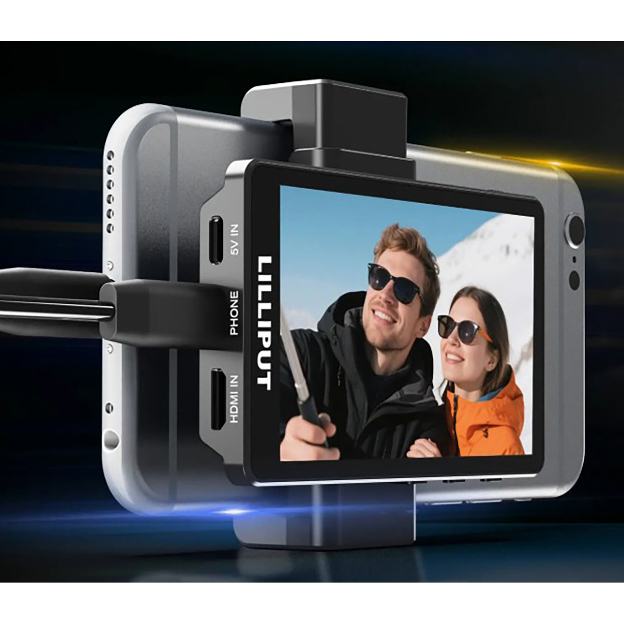 Powered by advanced Type-C display technology, it delivers true plug-and-play convenience and compatible with most full-feature Type-C smartphones and computers. A dedicated magnetic bracket with a cold shoe and a ¼" standard screw hole perfectly fits the phone, providing stable support.