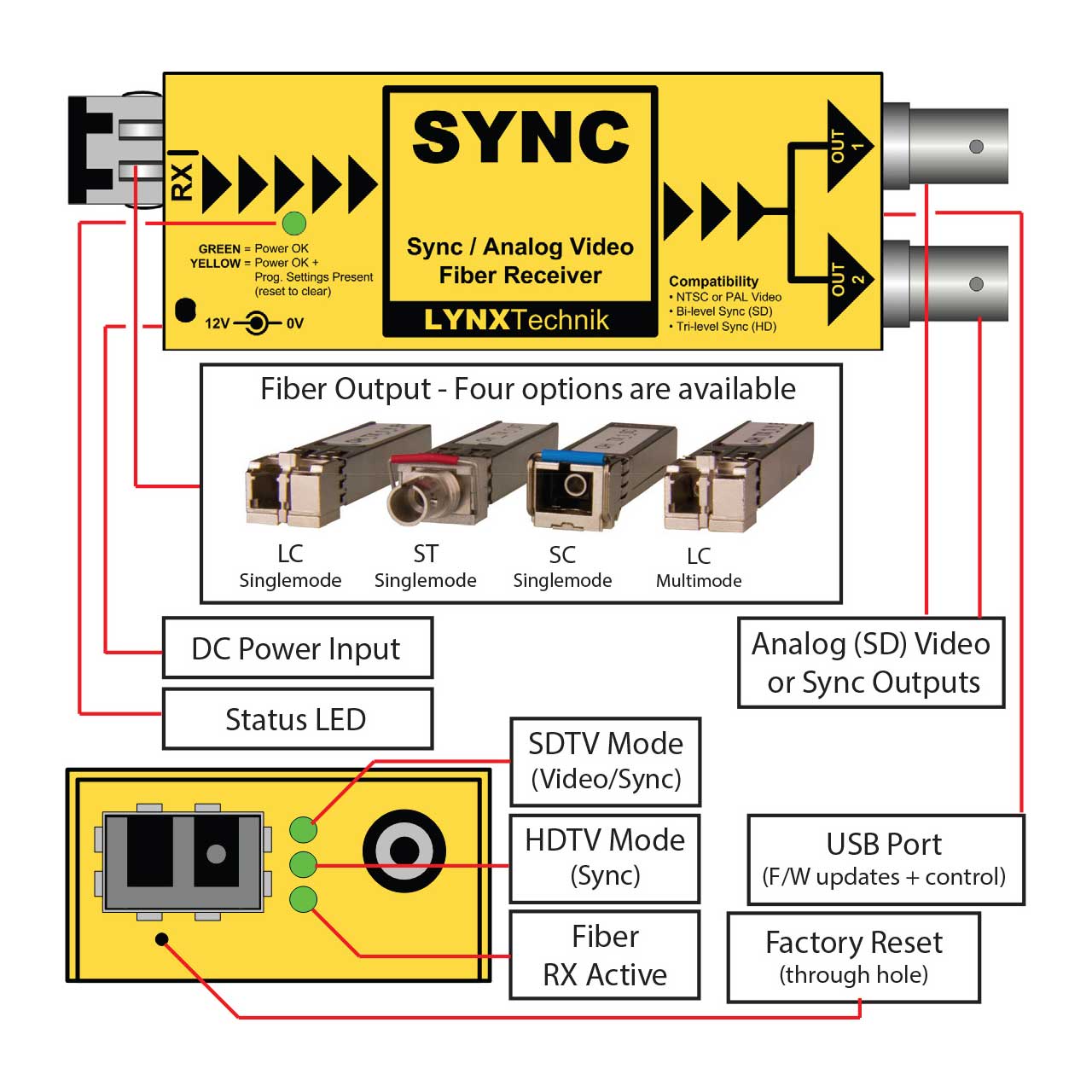The LYNX Technik ORX-1702-LC is a compact analog sync or NTSC/PAL composite video to fiber optic receiver. This device is specifically designed to combat the restrictions involved with the distribution of broadcast quality analog reference and composite video signals over long distances.