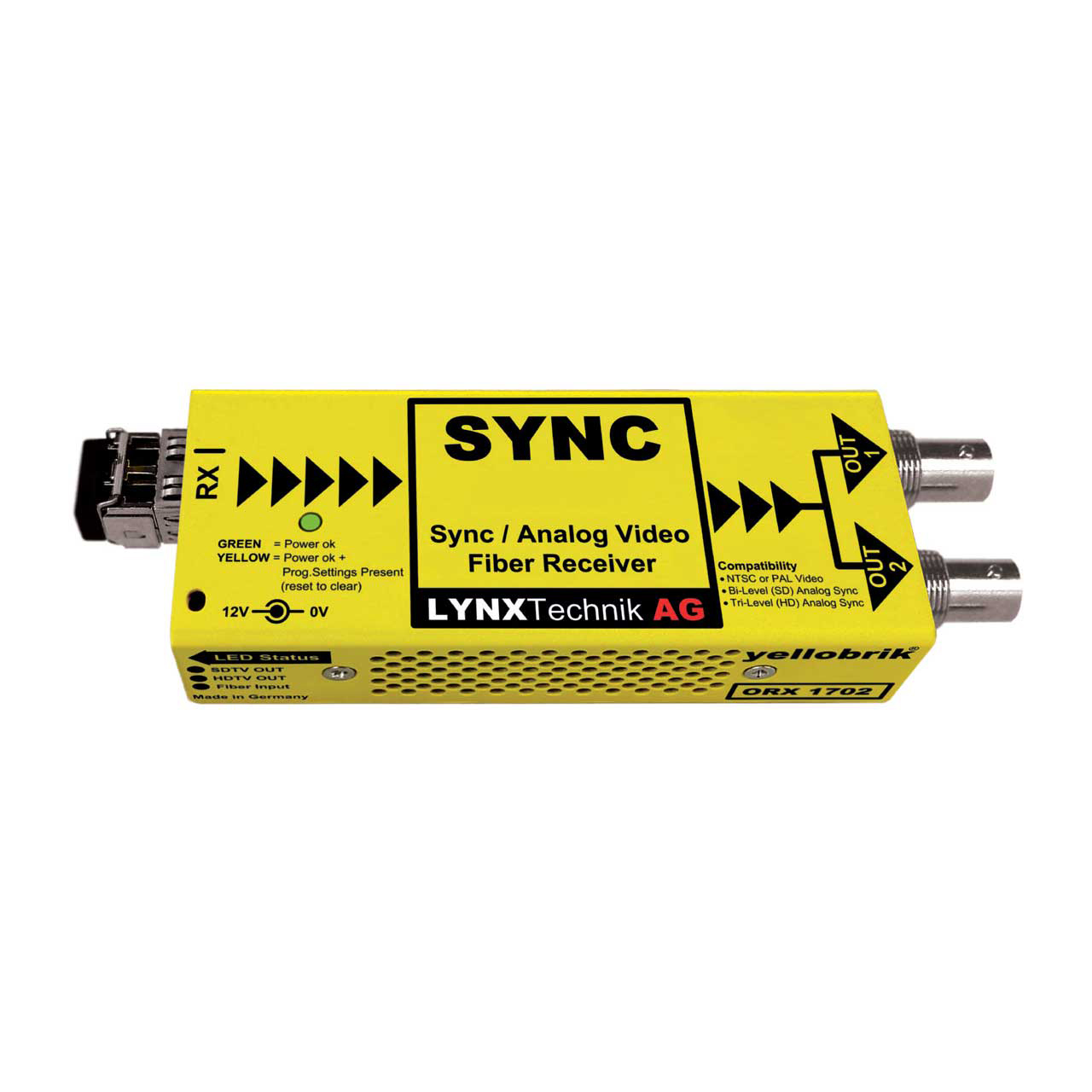 The LYNX Technik ORX-1702-LC is a compact analog sync or NTSC/PAL composite video to fiber optic receiver. This device is specifically designed to combat the restrictions involved with the distribution of broadcast quality analog reference and composite video signals over long distances.