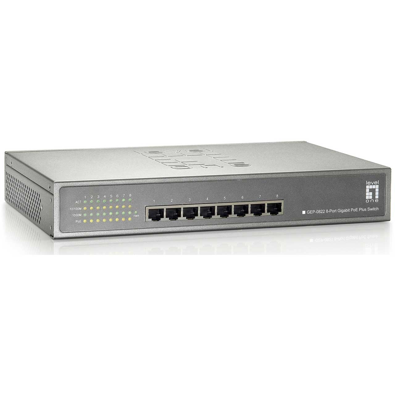 The LevelOne GEP-0822 provides 8 x 10/100/1000Mbps ports with IEEE 802.3at PoE-Plus supported. This switch is IEEE 802.3af/at compliant, and provides power and data over a single Ethernet cable to any PoE device, with total power budget of 240W, up to 30W per port. Together with Energy Efficient Ethernet (IEEE 802.3az) standard compliant, it substantially lower power consumption during periods of low-link utilization. Moreover, supports Gigabit Ethernet connectivity with 9K jumbo frames for network performing enhancement. Ideal for small businesses that prefer an inexpensive solution for PoE deploying infrastructure.