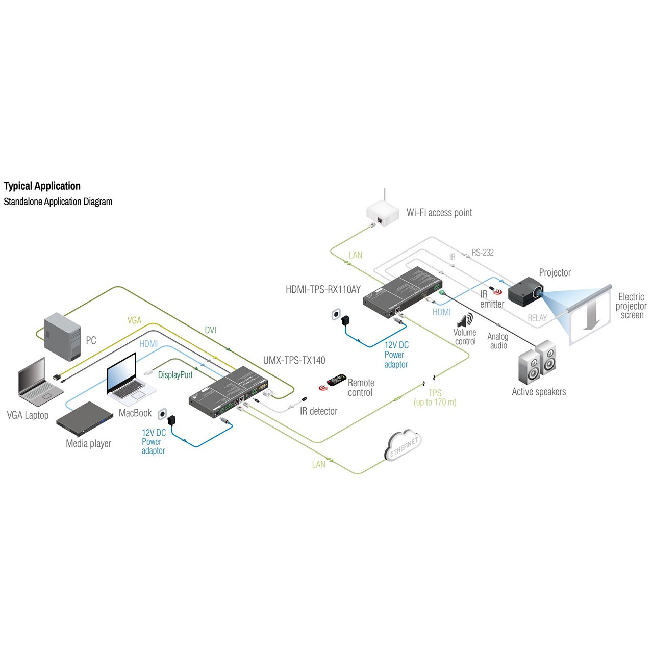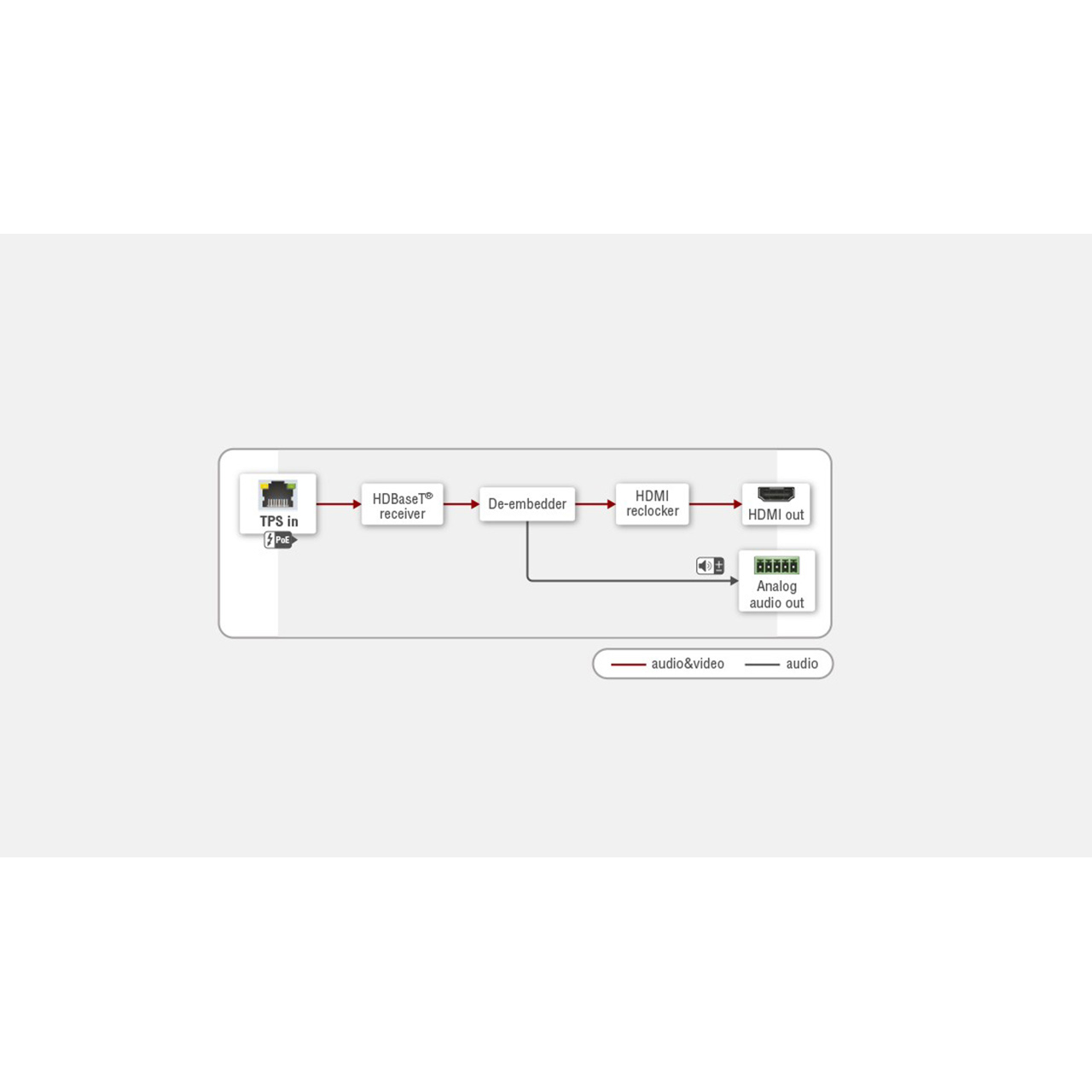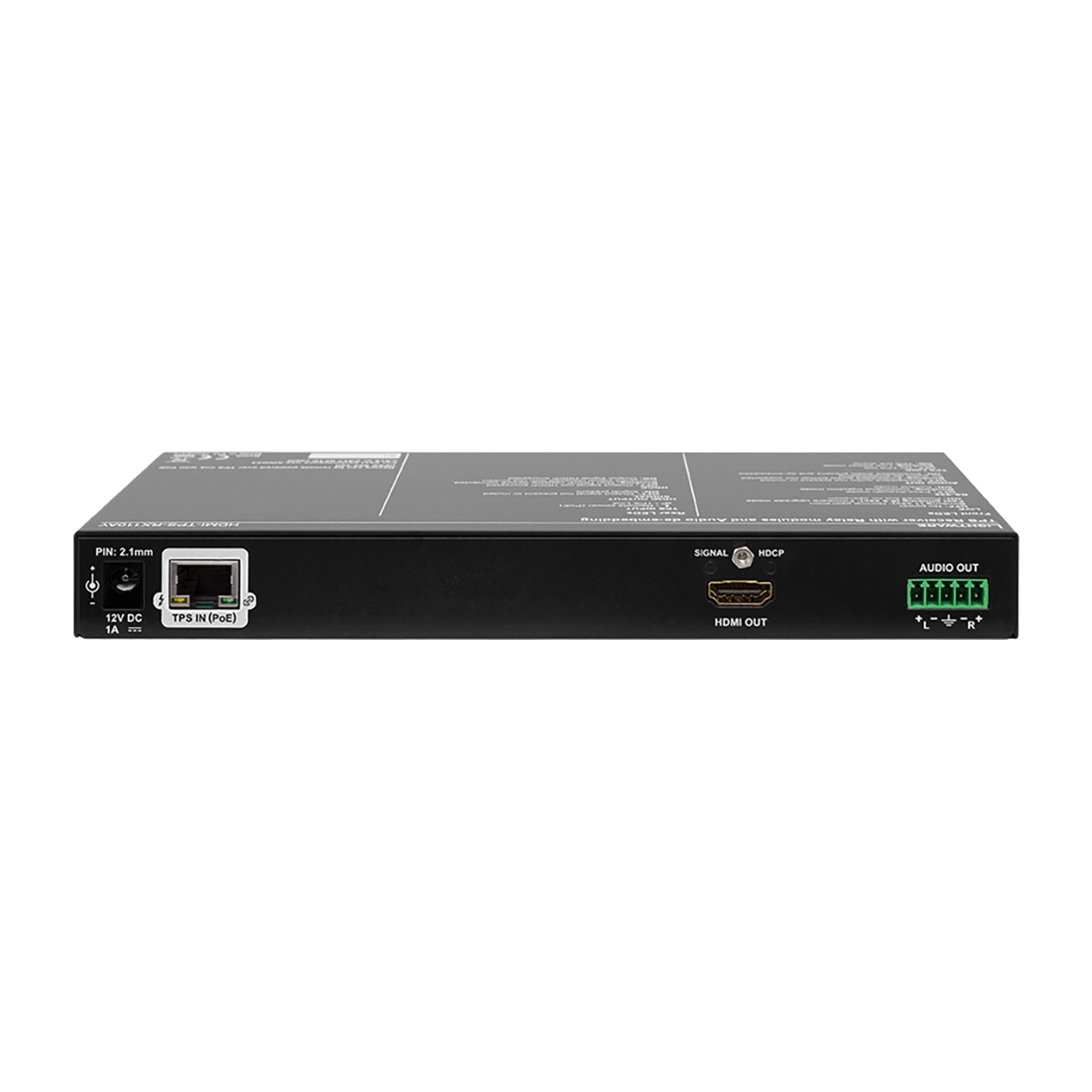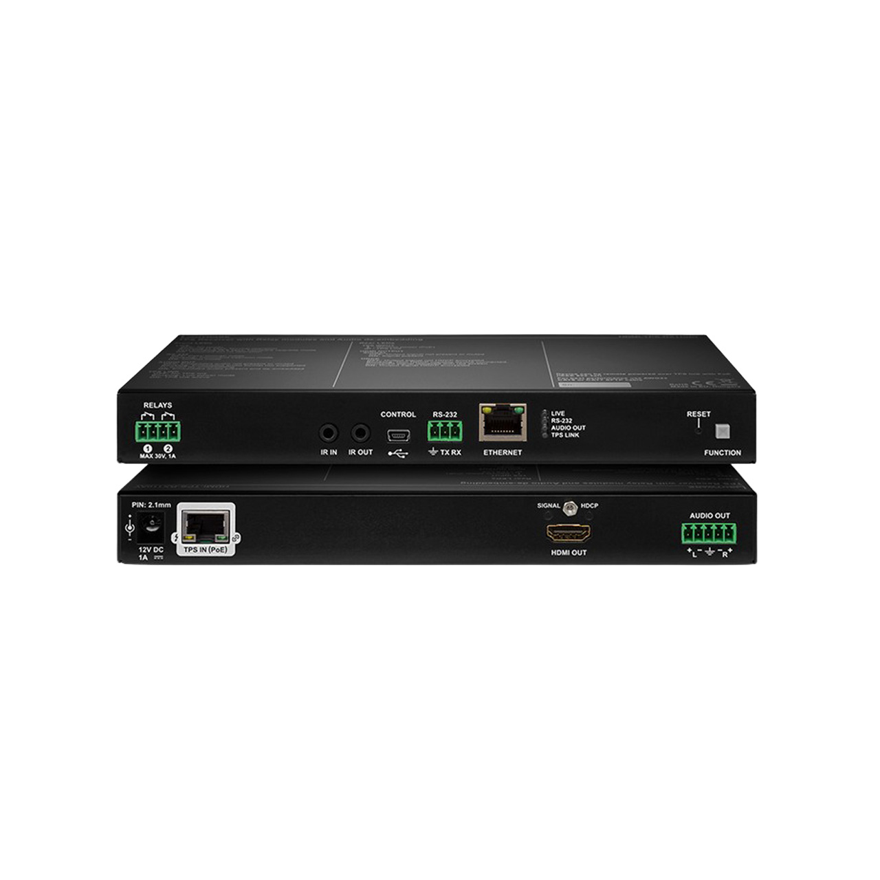 The Lightware HDMI-TPS-RX110AY is an HDBaseT Receiver with Relay Modules and Balanced Audio Out. This dual relay capable HDBaseT compatible TPS receiver has one PoE capable TPS input and one HDMI output, and features audio de-embedding.The HDMI audio is de-embedded to the balanced audio output via a Phoenix (Euroblock) connector, the audio port has volume control. The unit is HDCP compliant and has 4K/UHD and 3D capabilities. The built-in Event Manager room control feature provides the necessary control in a less complex application environment. Both the Event Manager feature and the dual relay module of the device are configurable via the freely available Lightware Device Controller software. USB, RS-232, IR (in and out) and Ethernet ports provide further connection options for control.