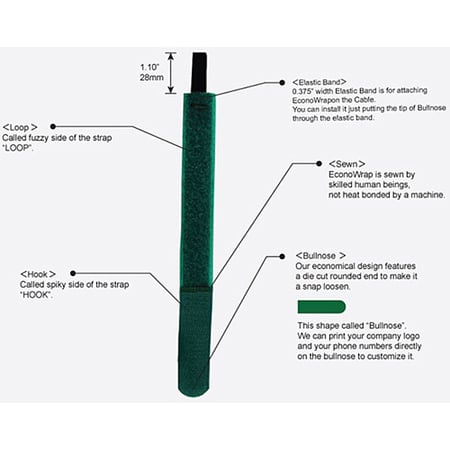The Rip-Tie EconoWrap is designed for organizing cables and cords for the professional and home user. EconoWrap is simple and easy to use, and is designed for organizing cables and cords for the more budget conscious user. Can be used to hold simple wire or cable bundles. Rip-tie manufactures high quality re-usable cable wraps, using a section of hook material stitched to a section of loop with a fabric pull tab. The loop material is punched so that the tie can be fixed to the cable using a nylon cable tie (supplied). The loop material forms an effective strain relief against cable damage. The fabric pull tab allows for easy opening with a good grip.