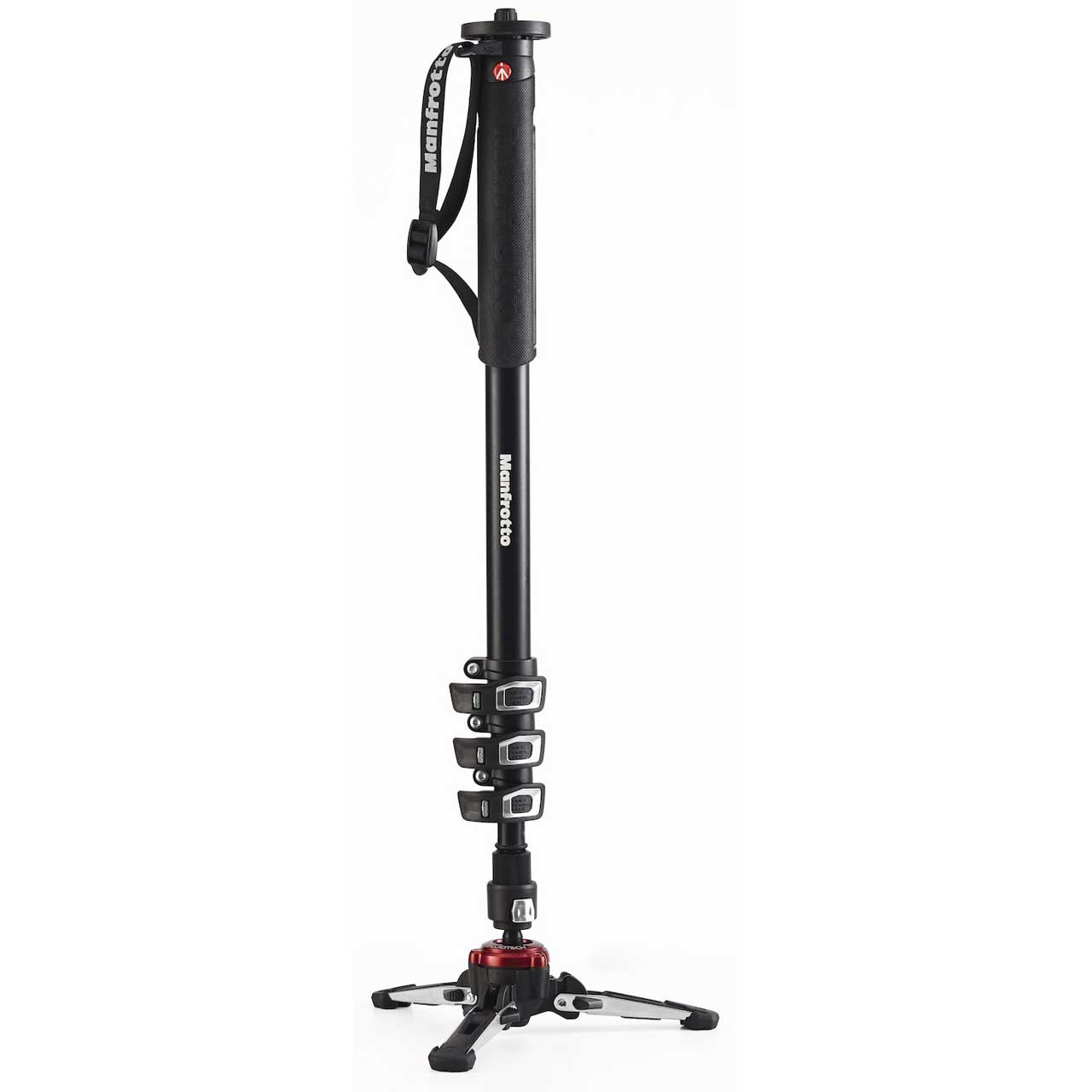 The new XPRO MVMXPROA4 Monopod Aluminium 4-section is a professional full fluid video monopod made to satisfy videographers who leverage the height of their monopod to get above crowds and to achieve a wide range of shooting angles. These state-of-the-art Manfrotto legs have inherited the perfect combination of rigidity and locking safety of professional tripod ranges, like the 190 collection and the 055 collection. This monopod is equipped with Manfrotto's full fluid base (MVMXPROBASE) featuring the innovative FLUIDTECH system that makes Manfrotto XPRO Monopod+ the first of its kind on the market to feature 3D fluidity. The FLUIDTECH video base enables the ultimate shooting smoothness on pan, tilt and swivel for an expanded range of perspectives. The three retractable feet make it extremely portable when folded and allow the monopod to be easily carried everywhere. The new D-shaped aluminium tubes greatly improve anti-rotation resistance throughout the monopod, following the videographer's rapid rotation movements. Combined with the Quick Power Lock (QPL) which strongly locks the lever onto the monopod tube's flat side, this eliminates unwanted jerky movements. Thanks to the newly designed leg warmer which provides exceptional grip and the dual 1/4'' - 3/8'' camera fixing screw, this new generation of monopods is handier, faster and more versatile out in the field. The MVMXPROA4 replaces the Manfrotto MVM250A