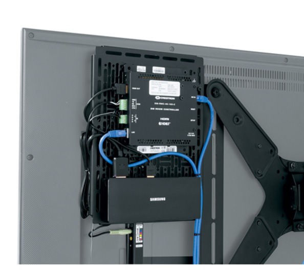 The PRX-MP-9X12 Proximity Series Mounting Plates attach directly to the display mount and offer convenient, local small device mounting. This option for locating technology behind the display features complete location flexibility. The included mounting arm attaches directly to any side of your chosen VESA mount, and features multiple locations for attachment of the mounting plate to the arm. Featuring our patented UMS pattern for mounting of small devices and components, this mounting plate offers 9" x 12" of mounting space.