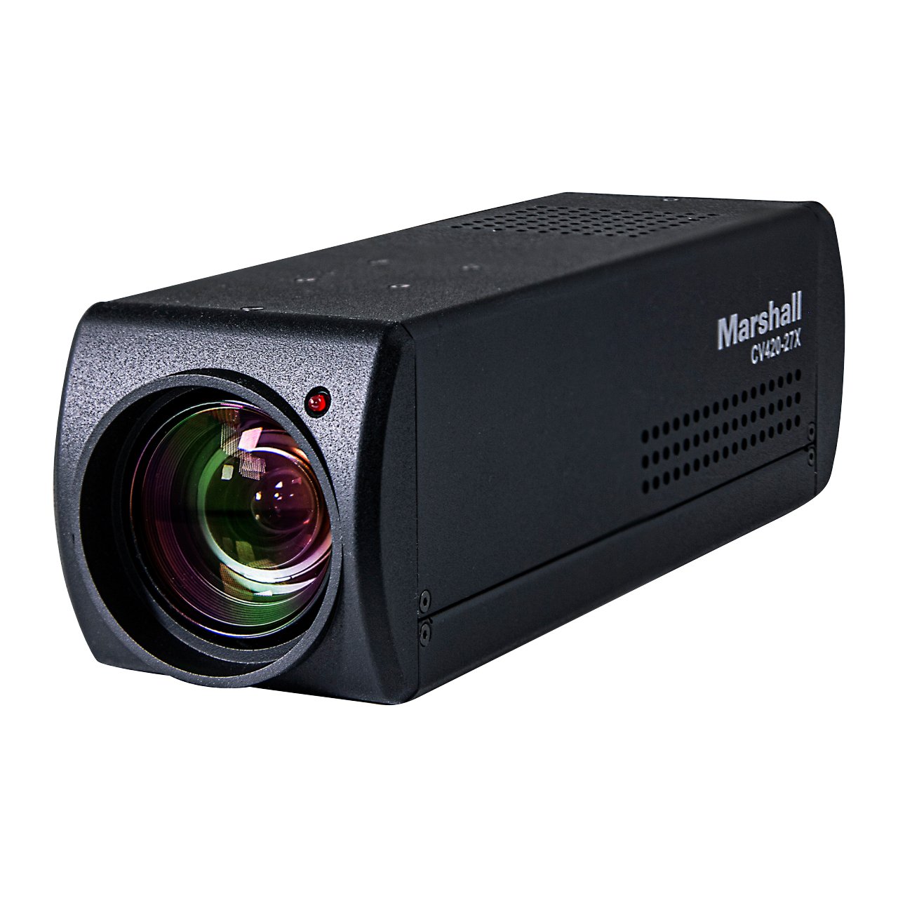 The CV420-27X UHD 4K HDMI/12G-SDI IP Box Camera with 27x Optical Zoom from Marshall Electronics is ideal for broadcast, government, court, education, house of worship, corporate training, remote medical, and internet communication environments. It features an 8.57MP, 1/2.5" CMOS sensor to capture up to UHD 4K60 video.