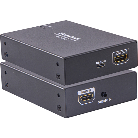 The Marshall VAC-12HUC converts HDMI 2.0 to USB-C (USB3.0/USB2.0) up to UHD 3840x2160p at 30fps. HDMI input has active loop-thru allowing the original high-quality source to be routed to monitors or other equipment as a pass thru. Common applications include live streaming, video conferencing and other PC or MAC-based applications.
