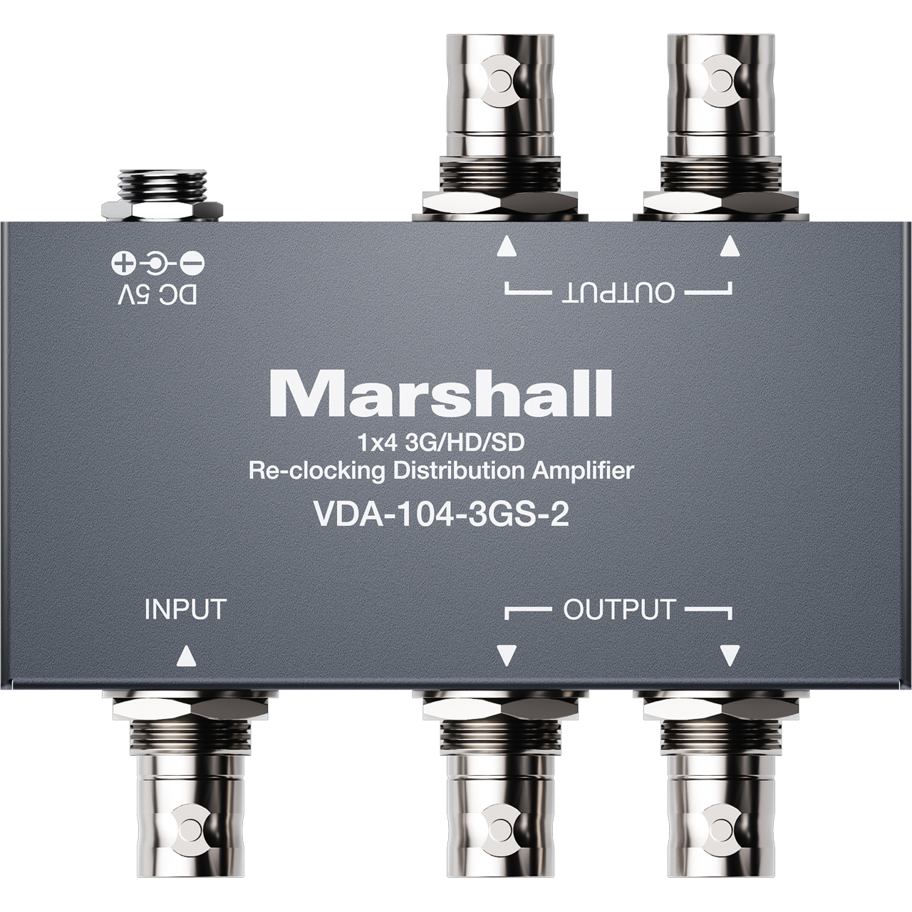 The Marshall VDA-104-3GS-2 receives one SDI input, perfectly duplicates it, and re-transmits four SDI outputs for real time multi-viewing. It is a reliable video device splitting a SDI, HD-SDI, or 3G-SDI video source to four SDI compliant displays at the same time. Besides, built-in re-clocking & equalization features provide the best performance for SDI distribution amplifier.