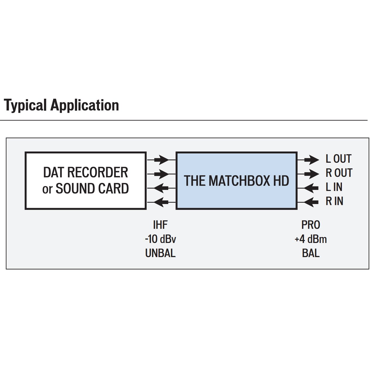 The rack-mountable Matchbox HD is the new high performance version of the industry's most popular analog level and impedance converter. Matchbox HD offers a true 100 dB S/N ratio, with 22 dB of headroom to yield 122 dB of dynamic range. It is the very best way to interface "consumer" or semi-pro equipment with professional audio gear.