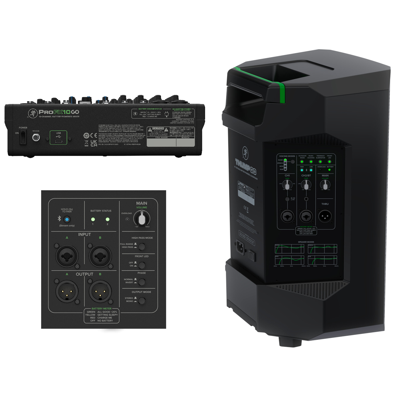 The included Mackie ProFX10 GO is a professional analog mixer and USB-C audio interface that can run on a rechargeable, swappable battery for up to 8 hours, so you're always ready to mix on the GO. ProFX10 GO gives you up to 8 hours of professional mixing and recording on a single charge with the included GB-10 battery. It's the best way to get quality live sound for remote gigs and outdoor events.