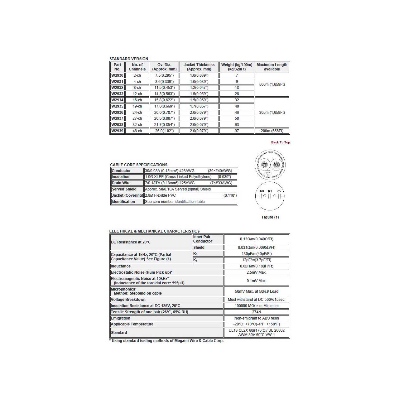 • Inner Pair Conductor: 0.13Ω/m (0.040Ω/Ft)