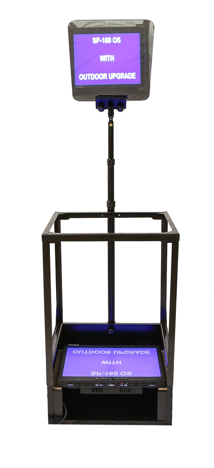 Now even better with 1000 NTS brightness! Quickly becoming the new Industry Standard. Use anywhere in the world. Great for traveling or when shipping is required. HDMI & SVGA inputs direct from your computer reveal an extremely sharp image. Features 2-15" LCD panels and accepts NTSC, SVGA, HDMI, SDI. These monitors can reverse the image left to right from within. Powered by 110/220 volts AC or 12 volts DC. Mirror size: 12.75" x 10". The SP-160 includes new adjustable glass holders for ease of operation. Don't forget software or extra cables. These monitors can reverse the image left to right from within.