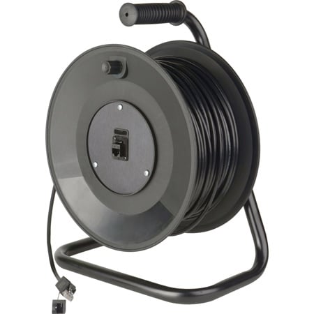 This series of the Connect-N-Go reel is designed for systems with existing baluns in place or anywhere you need a rugged, long length CAT5 run. Designed with Belden 7923A DataTuff cable and ProShell RJ45 connectors. 7923A DataTuff is a 24 AWG CAT5e cable with bonded-pairs and an industrial grade sunlight and oil-resistant PVC jacket. Ideal for field use because its extremely resistant to nicks and abrasions while at the same time its flexible jacket is designed for handy deployment and winding.