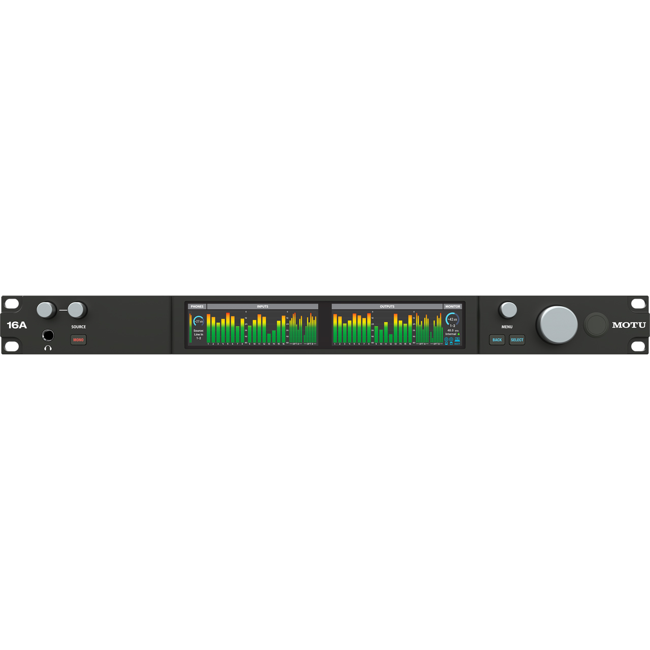 The MOTU 16A Thunderbolt audio interface is the world's first Thunderbolt 4/USB4 audio interface that connects to a Mac, PC or iOS device with extremely low-latency, high-performance drivers to deliver 66 channels of audio I/O, superb analog performance driven by renowned ESS Sabre32T DAC technology, 64-channel/32-bus mixing, and on-board 32-bit effects processing, including reverb, 4-band EQ, compressor and gate. Using intuitive, virtual patch cords in the include CueMix ProT app, easily route any source signal to any destination. Daisy-chain multiple 16A's together using standard network cables connected to dual Gigabit AVB network ports, or build an AVB network with AVB switches. Advanced features include USB audio class compliant operation, word clock, A/B/C monitor switching, talkback, AVB audio networking, and Wi-Fi control from your phone or tablet. Thunderbolt/USB4 compatible USB-C cable included.