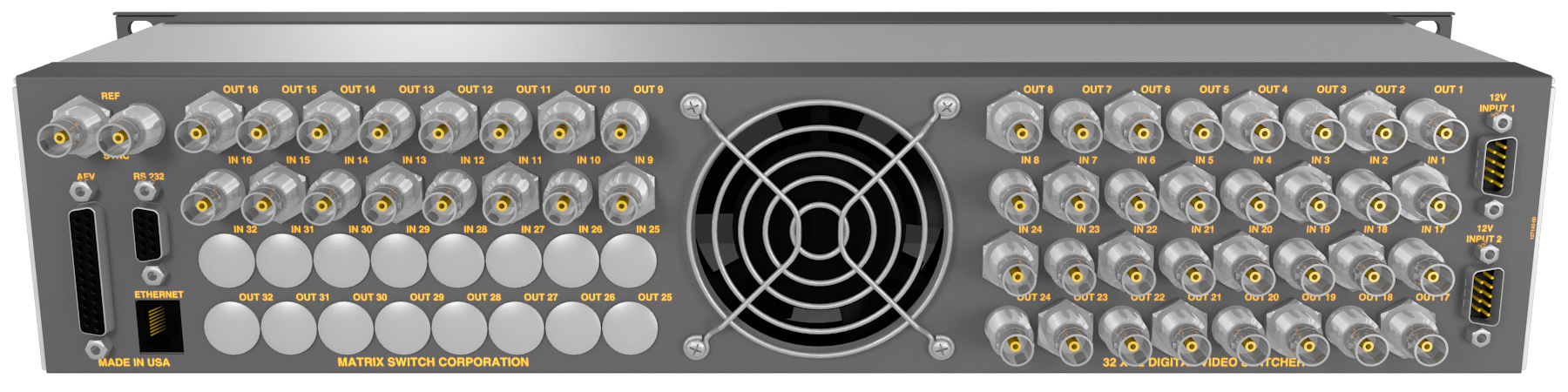 Matrix Switch Corporation 'Configurable 2RU SDI Video Routing Switchers' offer factory configurable matrix size configurations in input OR output increments of 8 up to 32x32 for a total of 12 different sizes. These systems are 2RU in height and less than 7 inches deep, allowing for installation in space and weight limited situations.